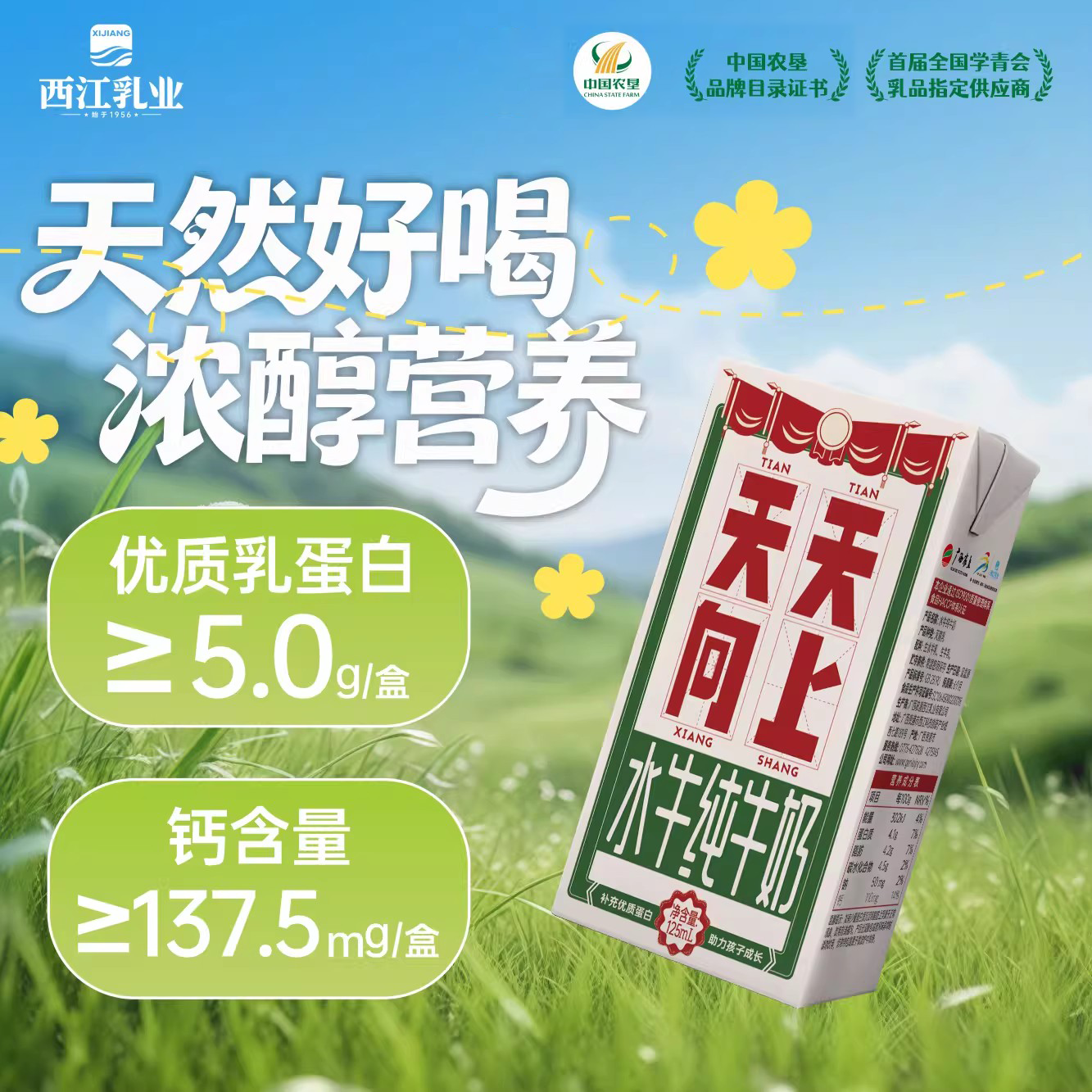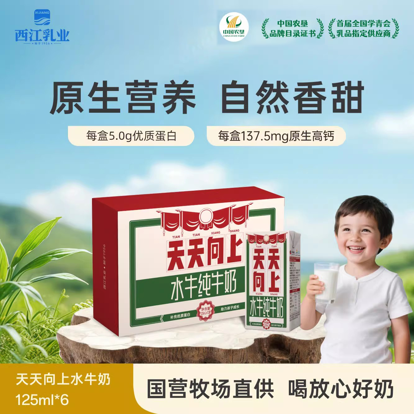 西江乳业儿童水牛纯牛奶水牛奶宝宝牛奶125ml/盒