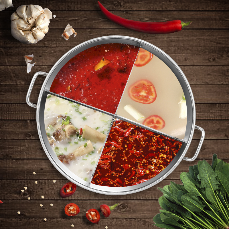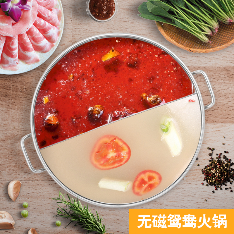不锈钢鸳鸯锅加厚麻辣汤锅大汤桶两味火锅锅圆形分隔锅商用家用