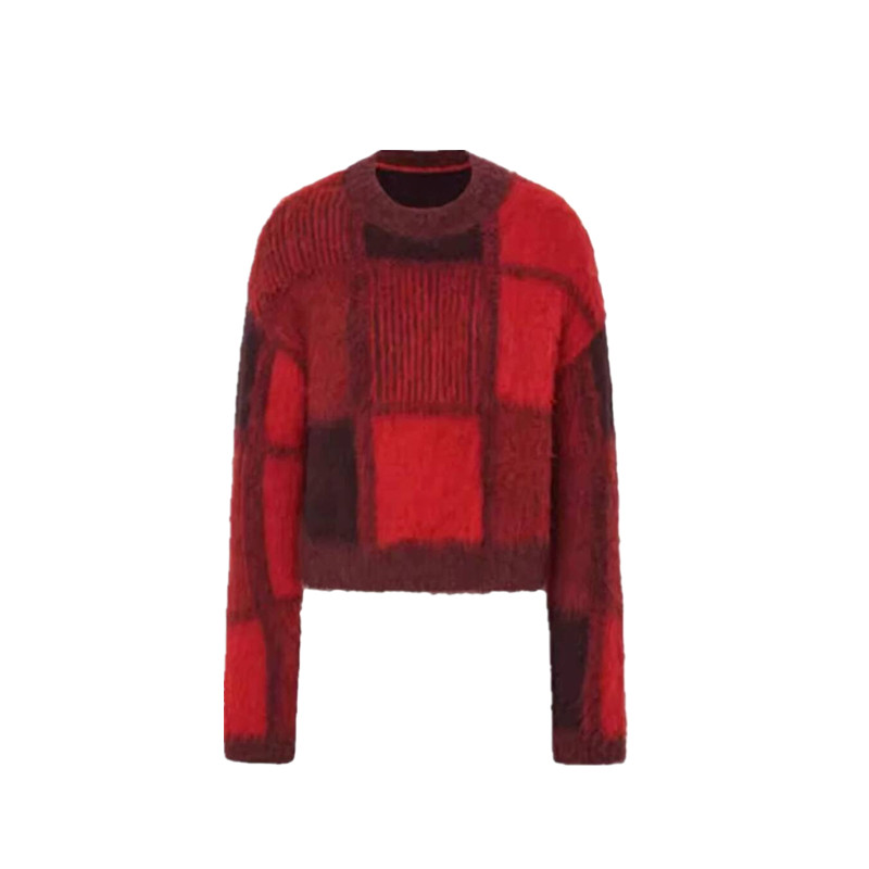 骄阳似我赵今麦聂曦光同款针织衫上衣新年红色格子圆领套头毛衣女