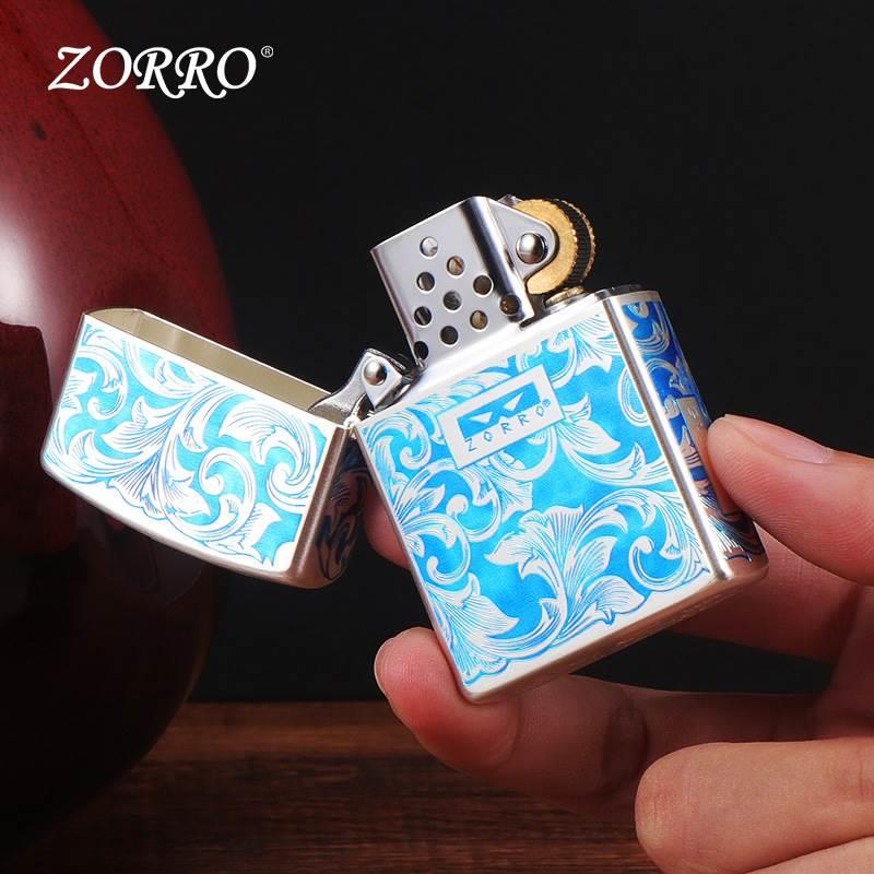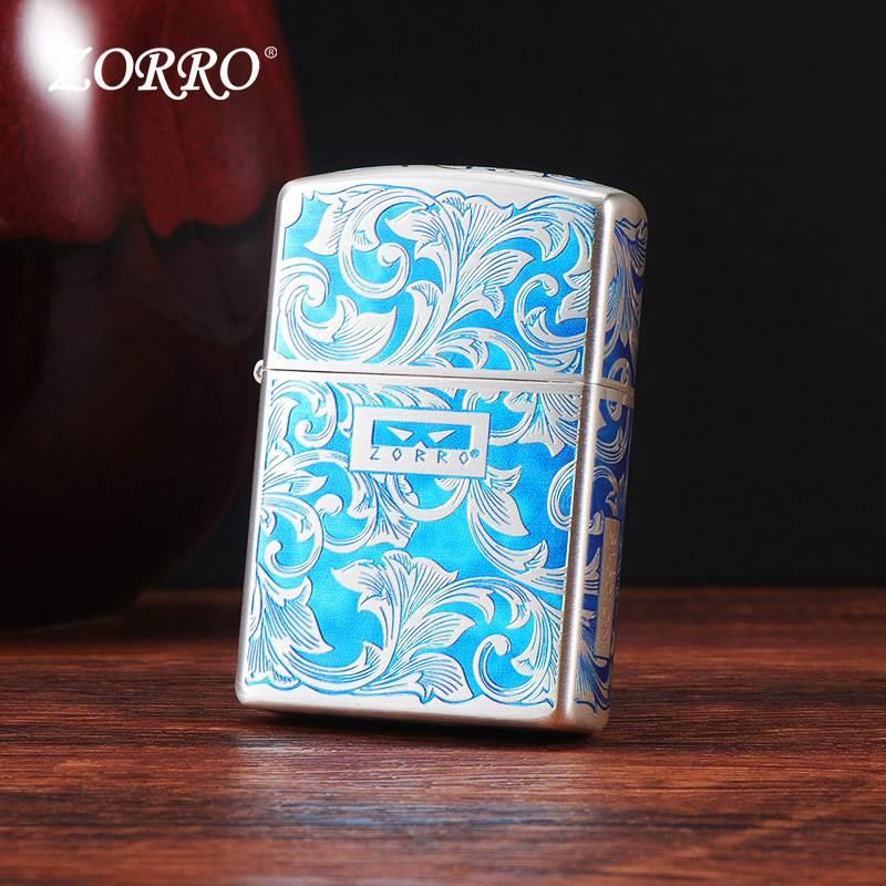 ZORRO佐罗 二代银蓝镀银唐草煤油防风打火机男女生日礼物礼品实用