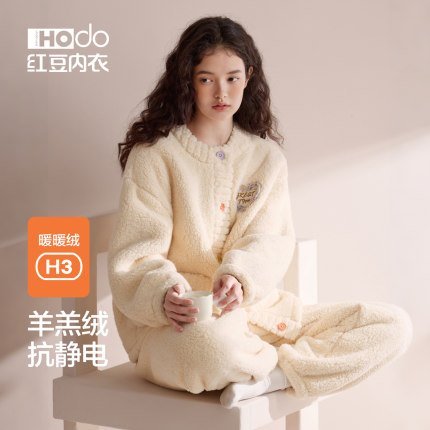 红豆珊瑚绒睡衣女羊羔绒抗静电加厚桂花绒甜美保暖外穿家居服套装