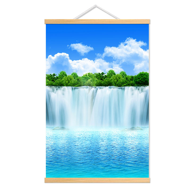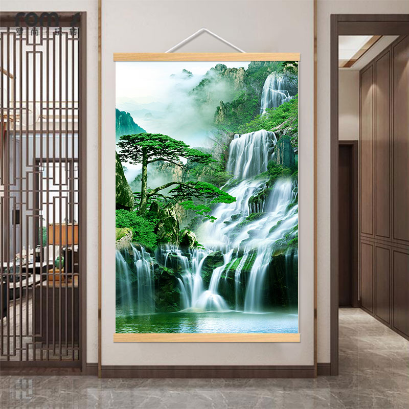 瀑布流水挂画流水生财风水招财客厅玄关山水风景简约现代装饰画