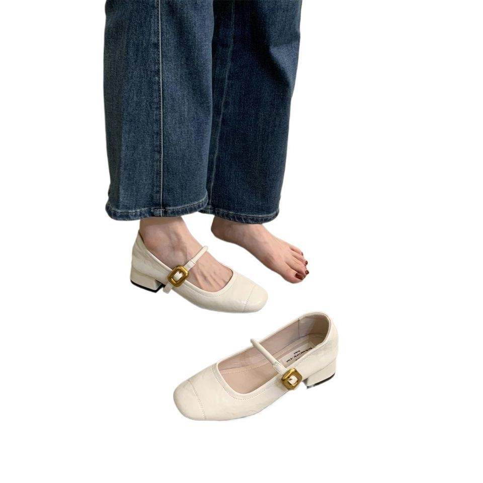 法式浅口单鞋女粗跟2025秋季新款韩版时尚小皮鞋复古中跟玛丽珍鞋