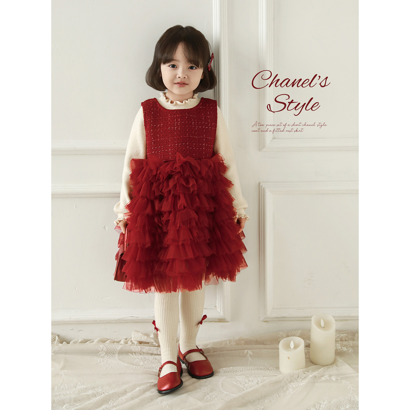 幼悠女童2025冬季新款绗棉保暖外套加绒加厚蛋糕裙小香风年服套装