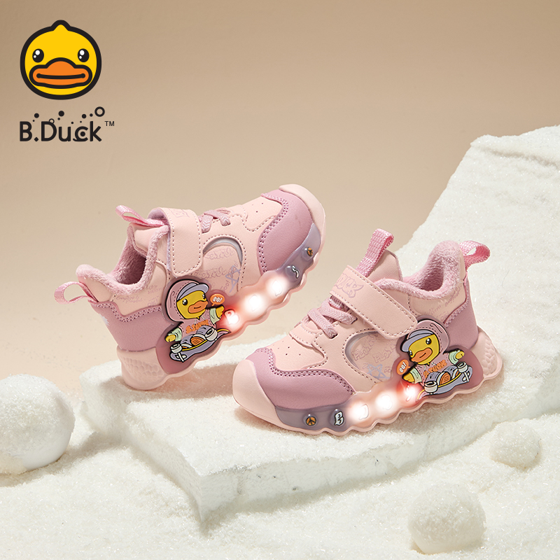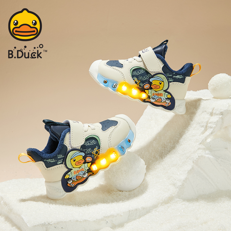 bduck小黄鸭童鞋男童鞋运动鞋加绒冬季小童亮灯鞋发光女宝宝棉鞋