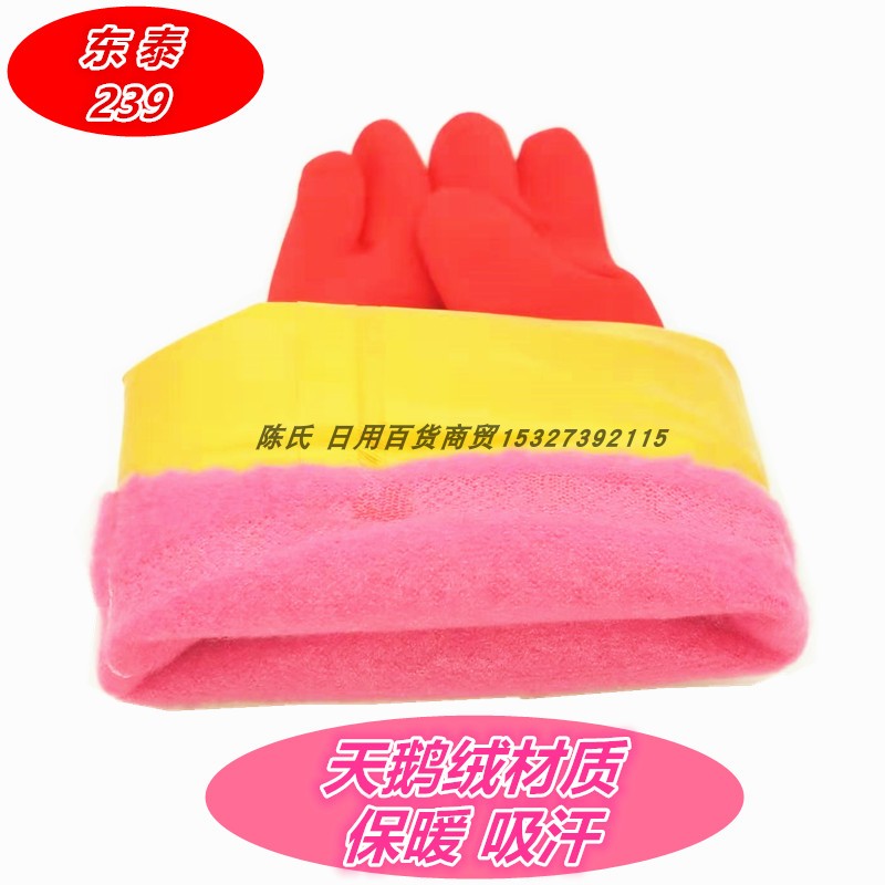 东泰天鹅绒厨房耐用加厚清洁家务保暖加绒洗碗洗衣服橡胶防水手套