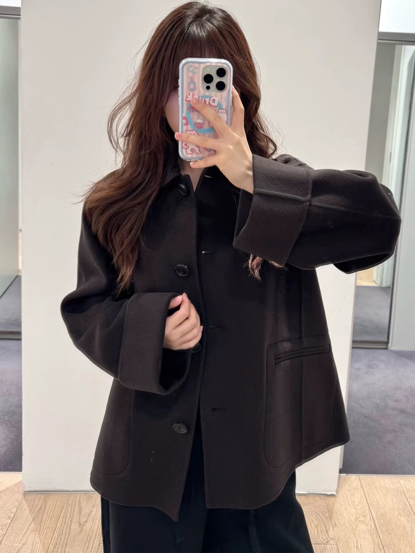 2025秋冬新款Co*双面羊毛混纺短款大衣女士韩版宽松呢子外套夹克