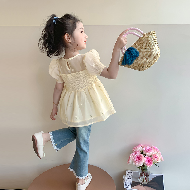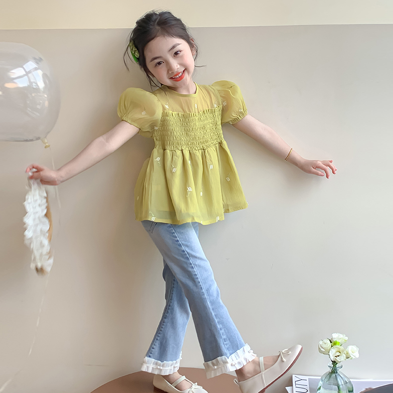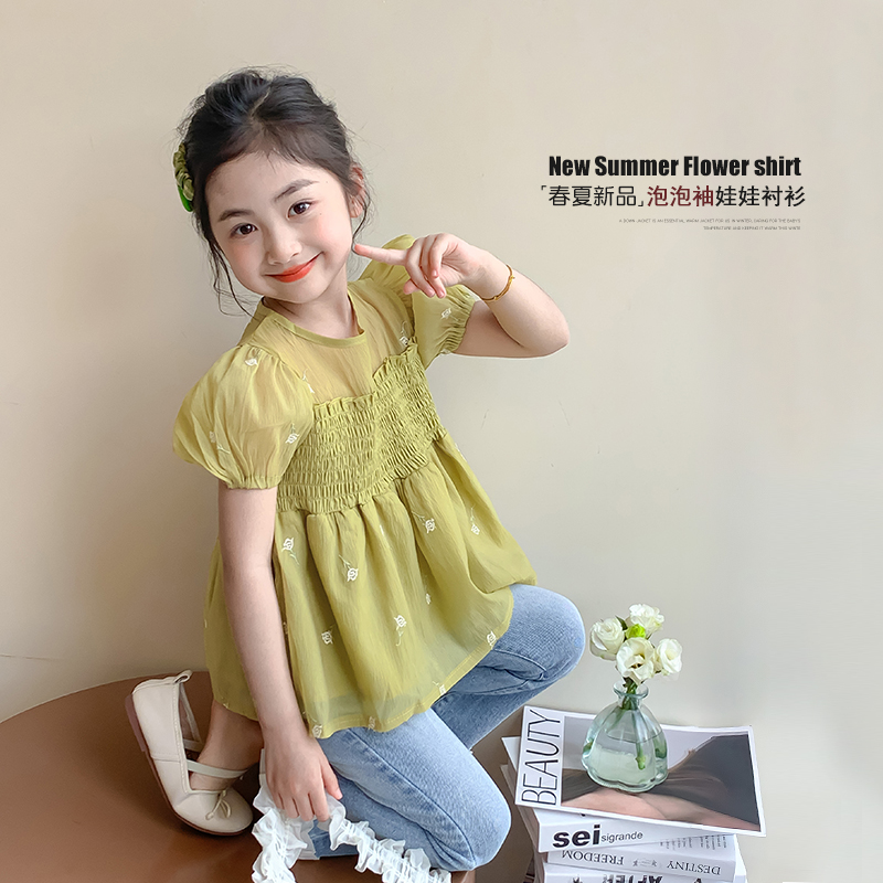 女童衬衫夏季泡泡袖半袖洋气上衣