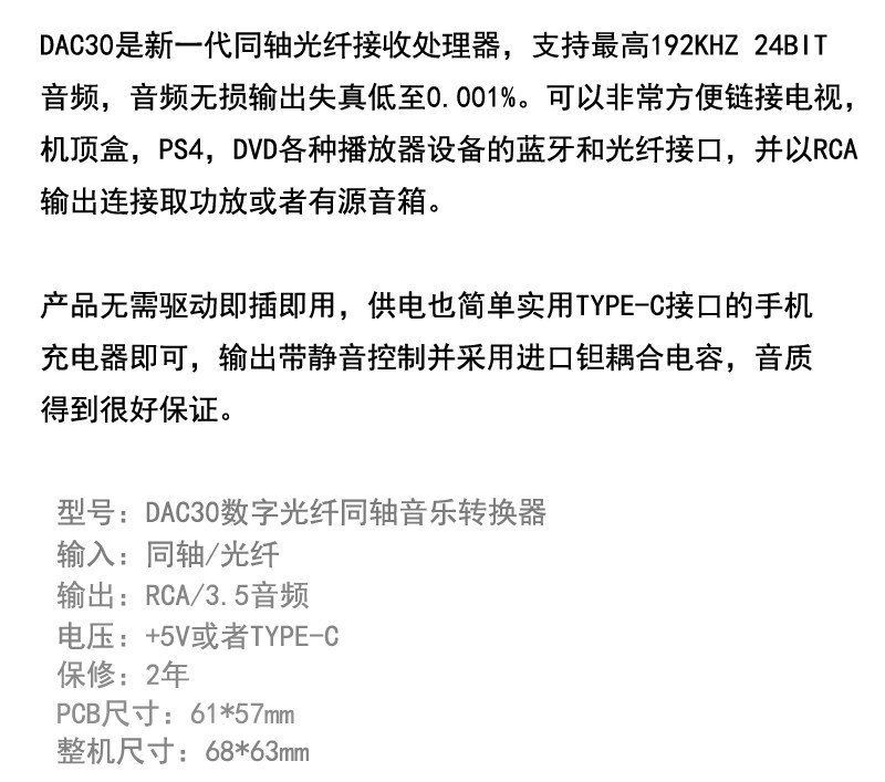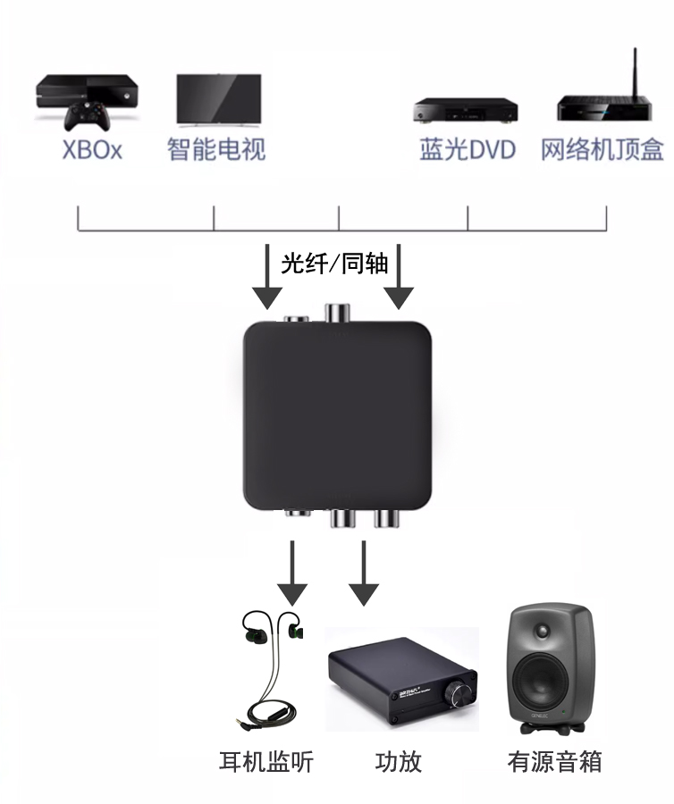 伟良同轴光纤音频转换器电视机顶盒解码器DAC 铝合金外壳静音版