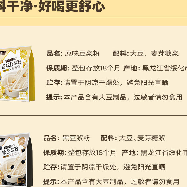 龙王豆浆粉630g*2袋黄黑豆脱皮豆浆组合囤货装速溶冲饮