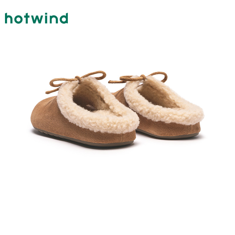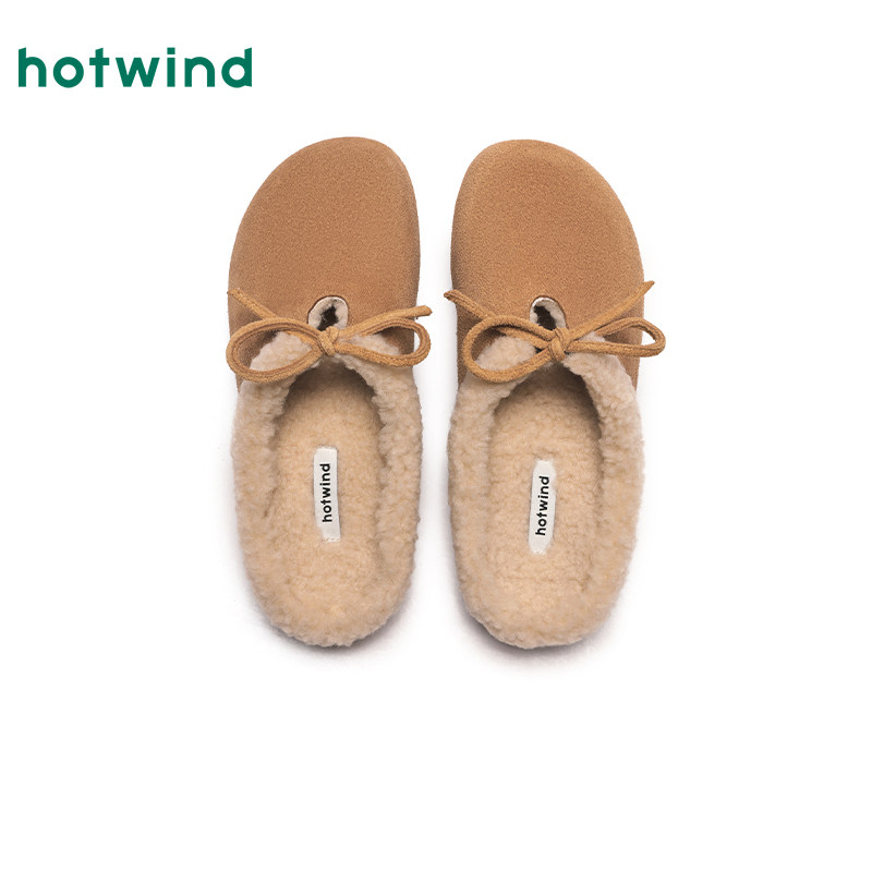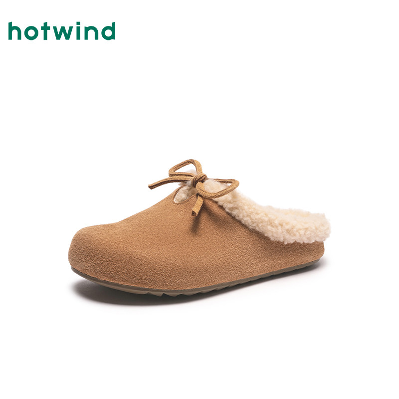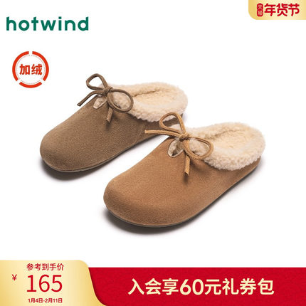 热风女鞋冬季新款女士加绒毛毛勃肯鞋保暖外穿半拖百搭拖鞋