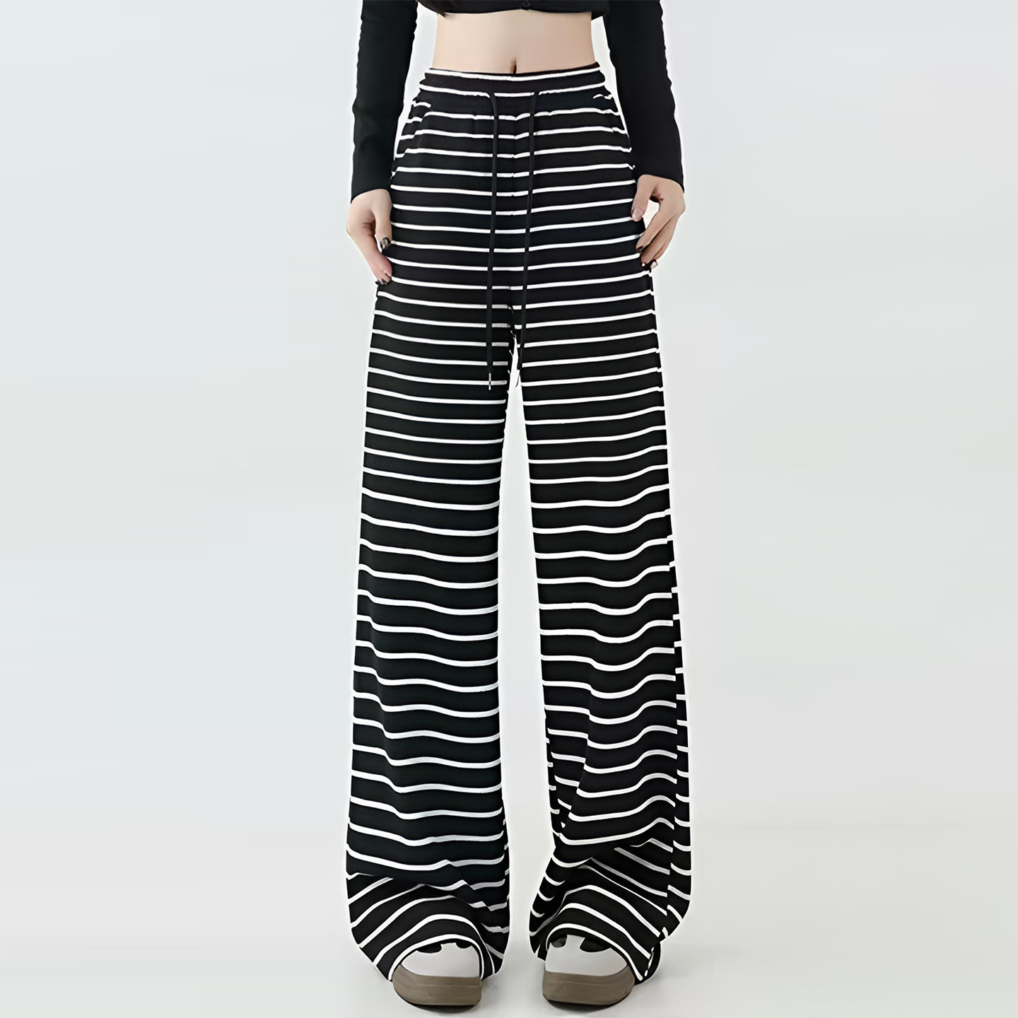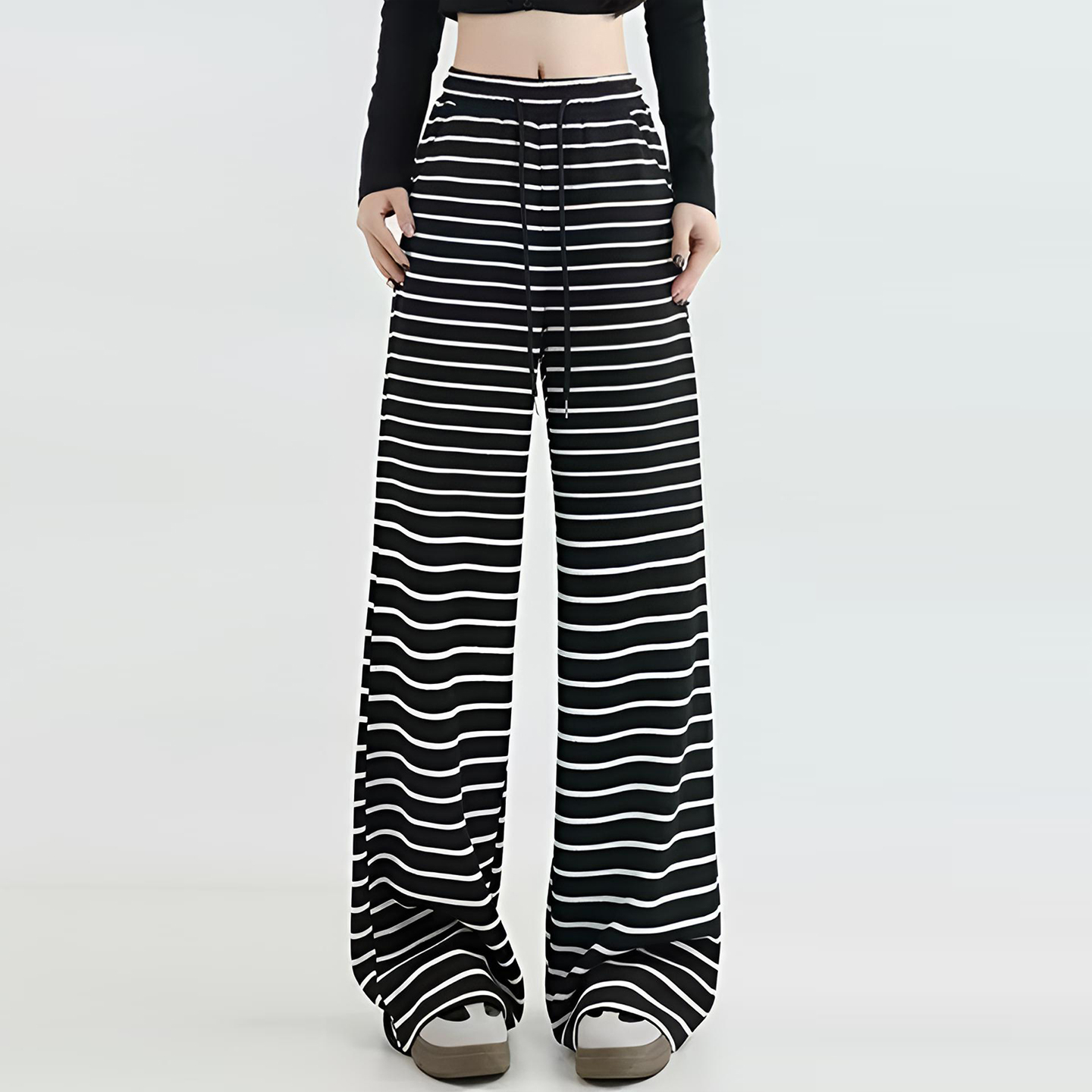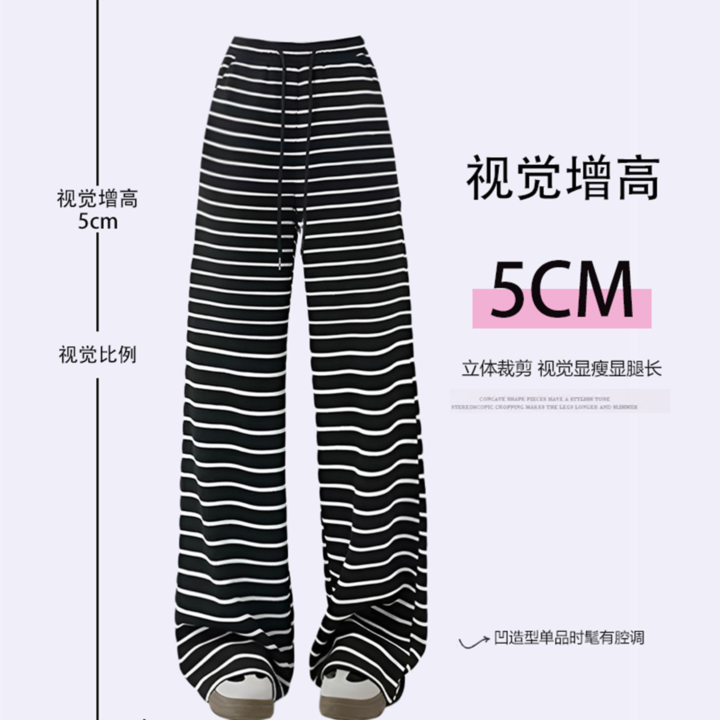 300斤大码女装宽松休闲风条纹运动卫裤女胖mm慵懒松弛感阔腿裤子