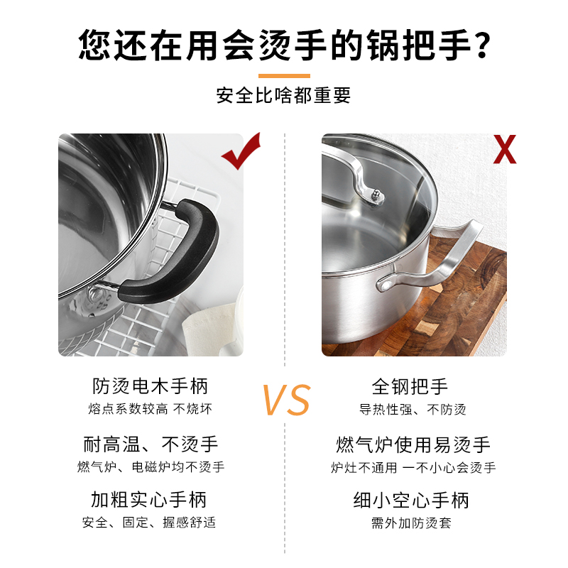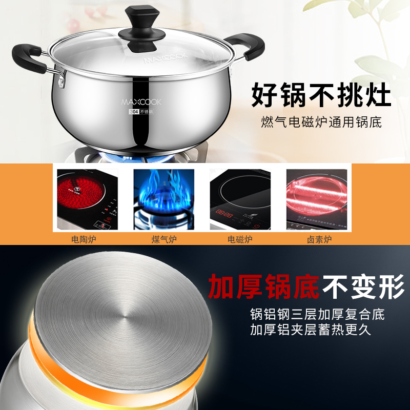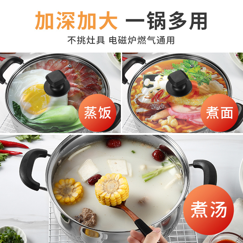 304不锈钢家用汤锅火锅复底炖锅打边炉不粘双耳锅电磁炉燃气通用