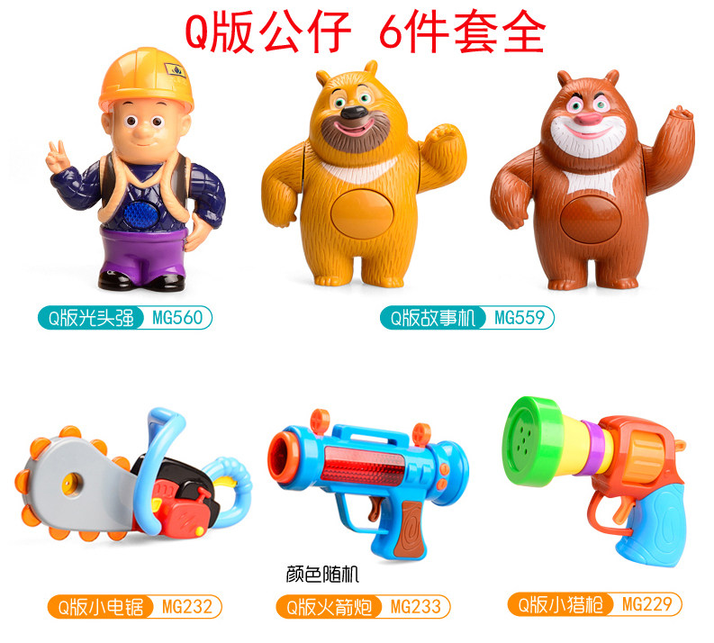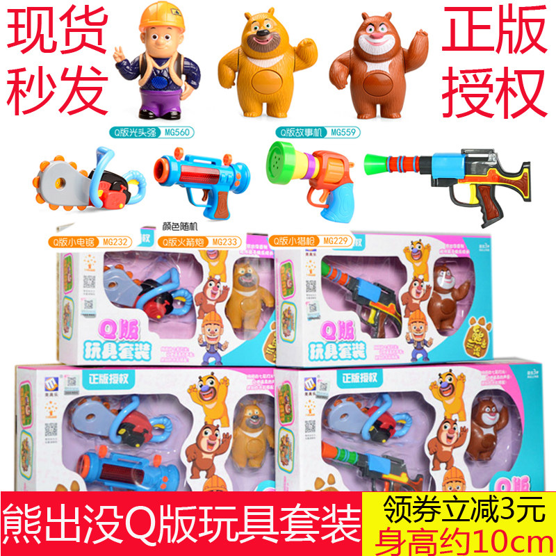 迷你款 光头强Q版声光小公仔人偶 熊大熊二音乐灯光小玩具枪 套装