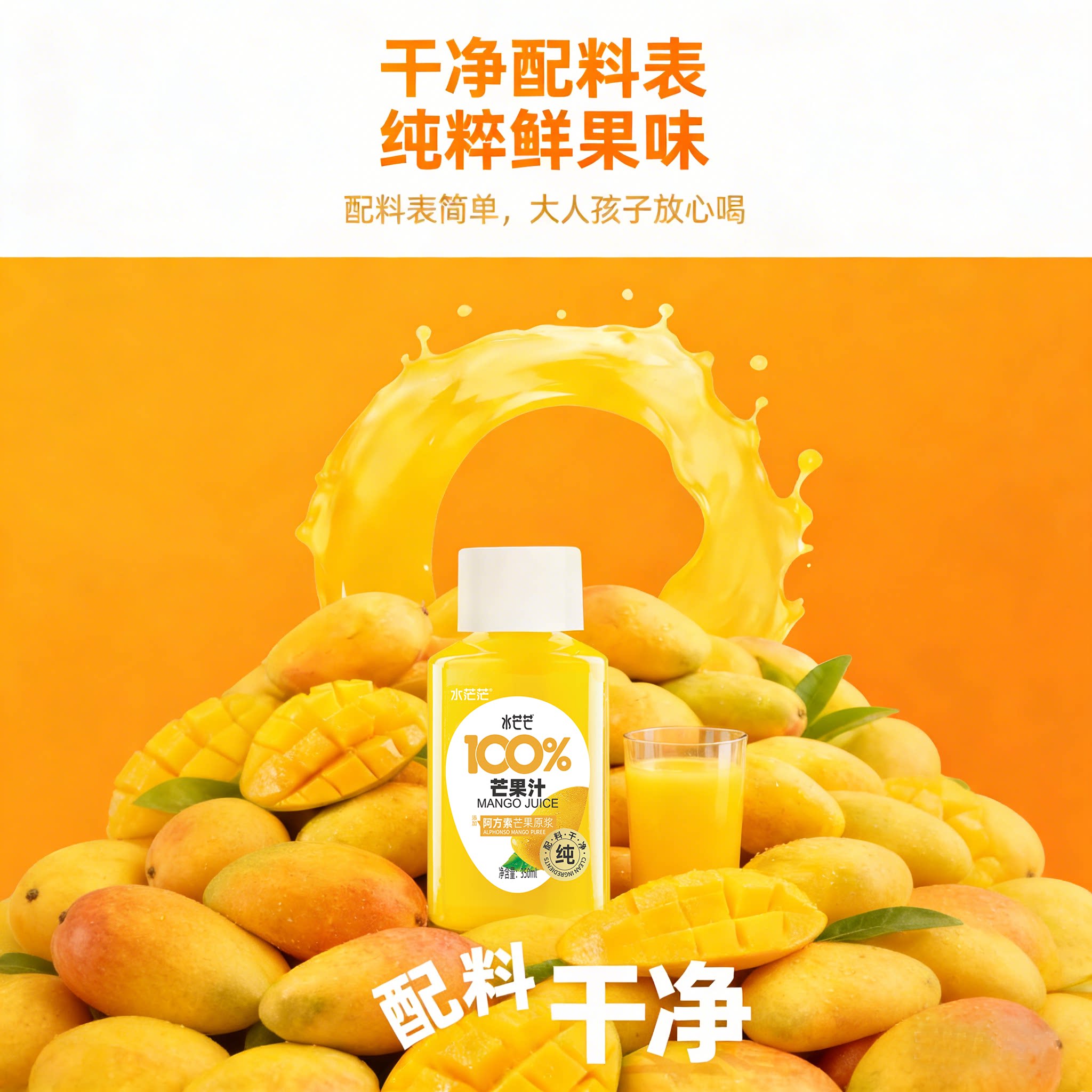 水茫茫100%芒果汁葡萄汁椰子水350ml100果汁饮料饮品特惠年货送礼