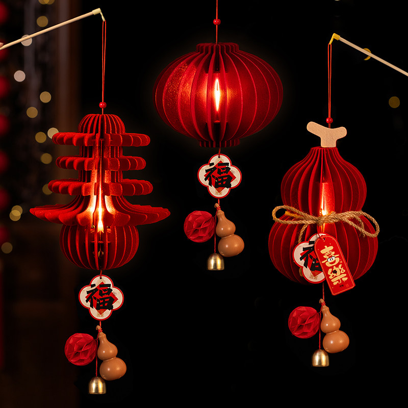 新年葫芦手提灯笼装饰2026新款元宵手工diy春节过年发光花灯布置