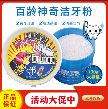 中国台湾百龄洁克美白牙粉130g洁牙粉溶解洗白牙齿清口气洁白牙膏