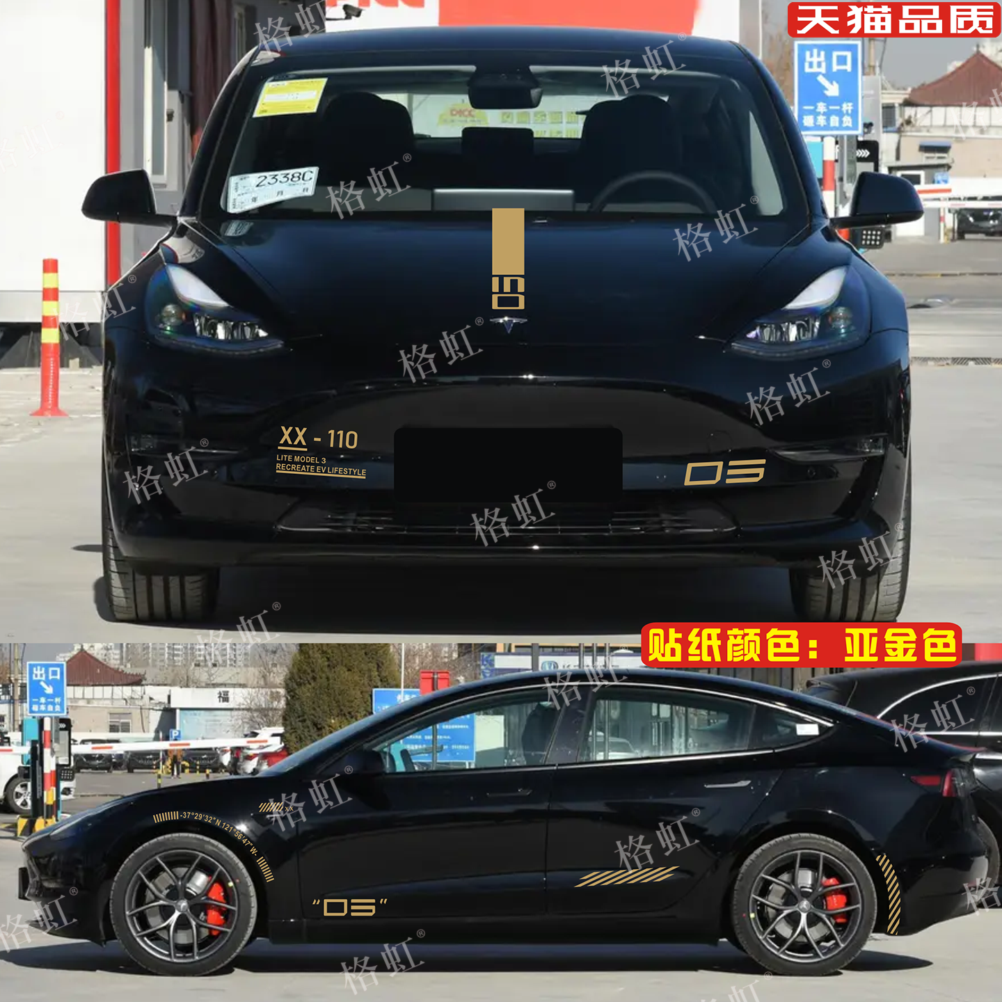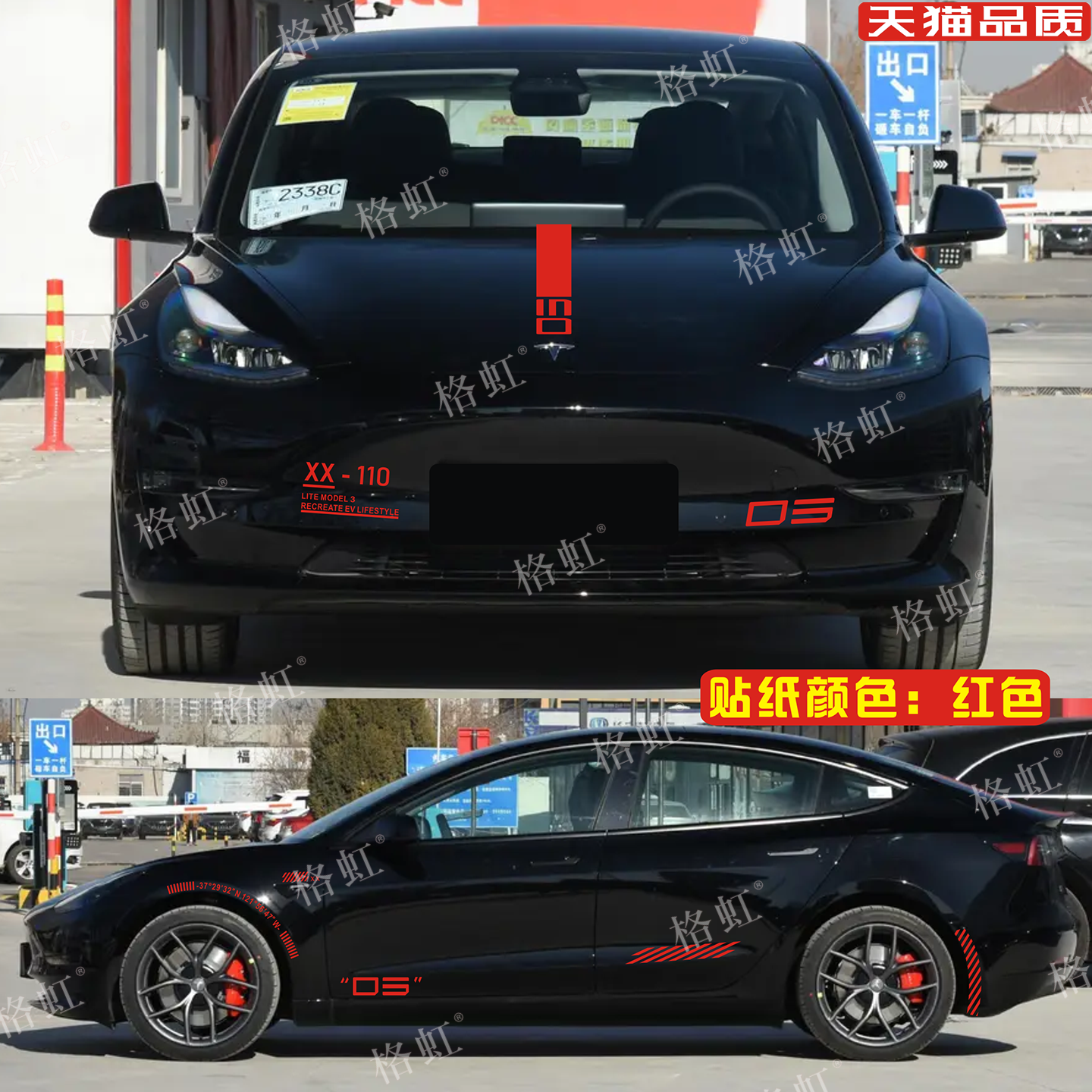 适用于特斯拉Model 3车贴拉花 毛豆3 改装引擎盖侧裙装饰彩条贴纸