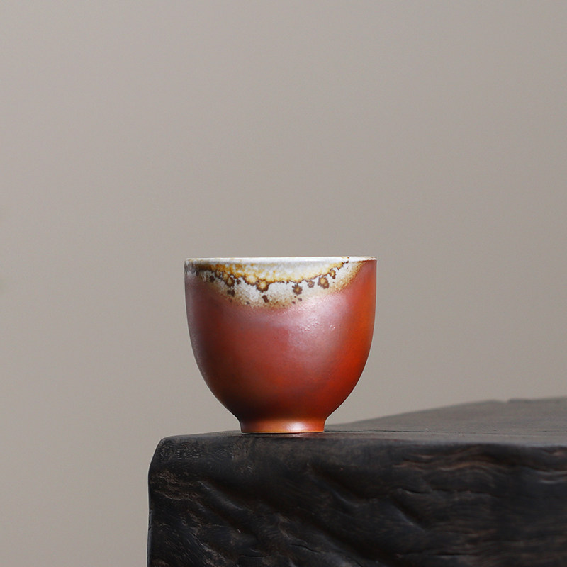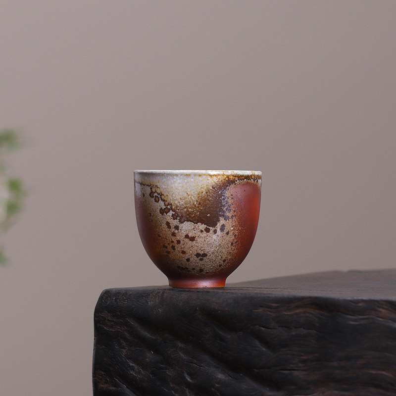 九木手作 纯手工原矿陶泥柴烧小茶杯 松木裸烧茶杯个人杯品茗茶杯