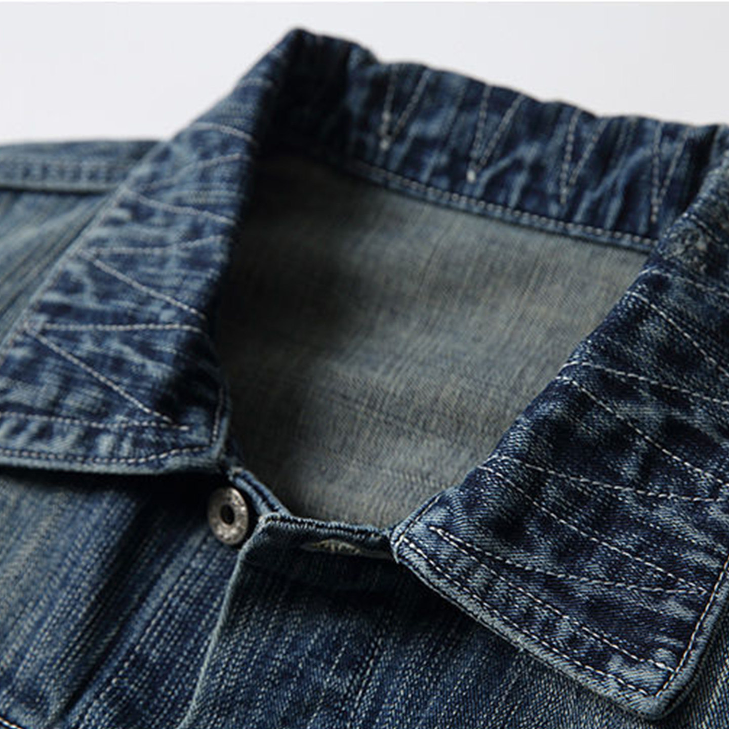 原创新男款 重磅水洗修身牛仔夹克外套工装大码欧美简约潮 牛仔衣