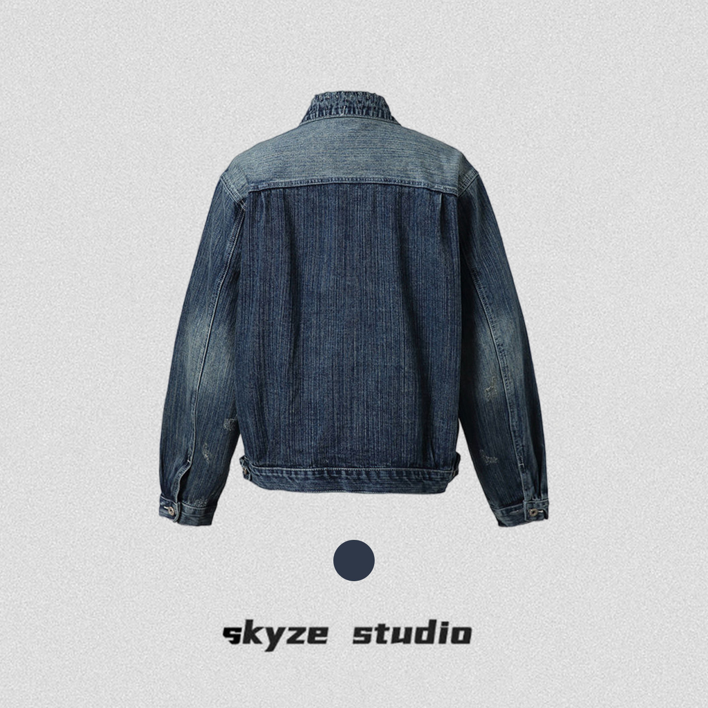 Skyze Studio空溯实验室复古水洗牛仔外套男宽松翻领短款潮流夹克
