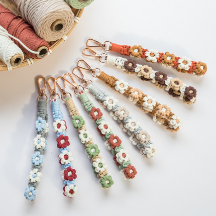 绳编手机链双色花朵钥匙扣挂饰手工diy材料包手机包挂件相机背带