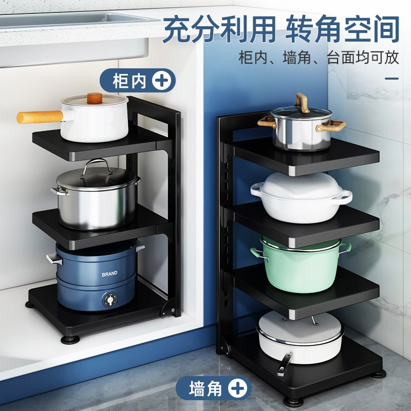 厨房置物架家用落地式多层锅具收纳架下水槽橱柜内柜子分层放锅架