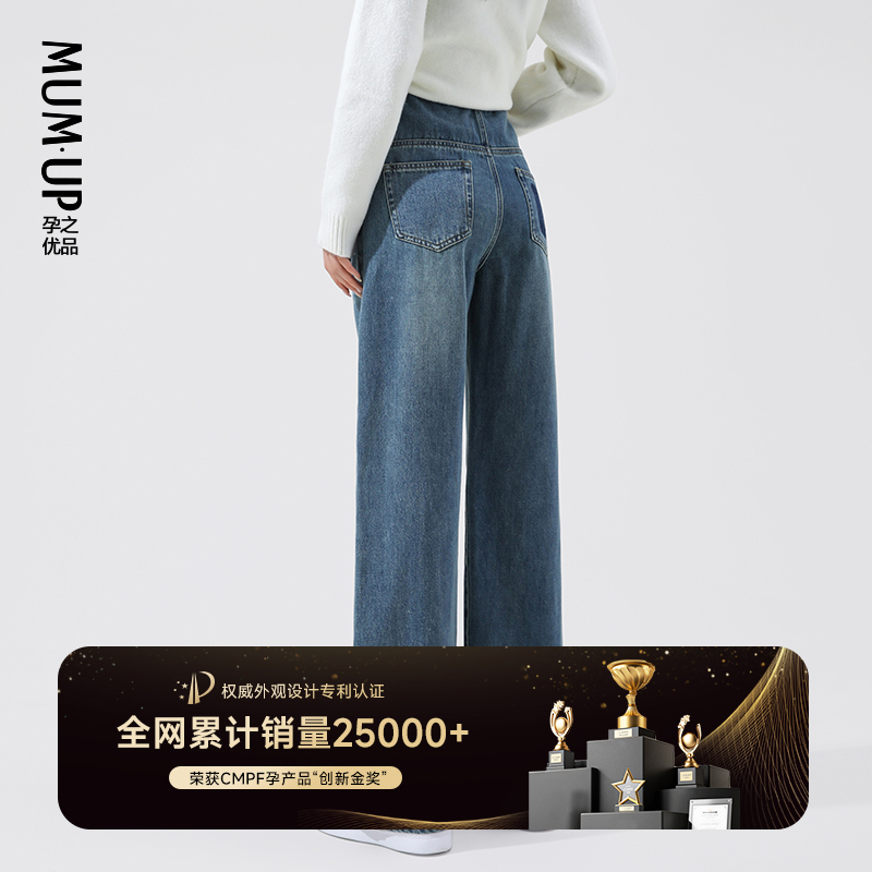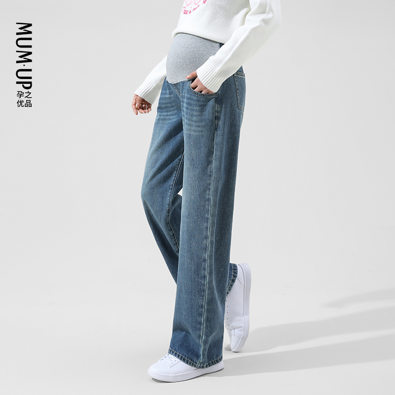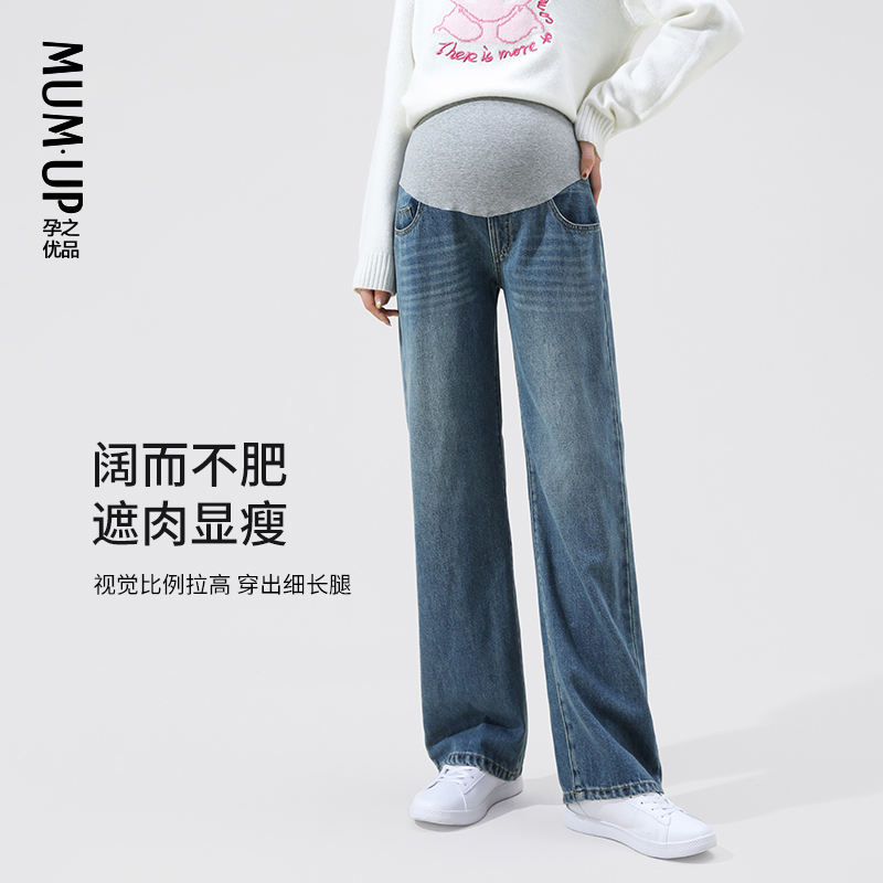 孕之优品孕妇牛仔裤秋外穿宽松高腰托腹阔腿裤子孕妇裤2025新款冬