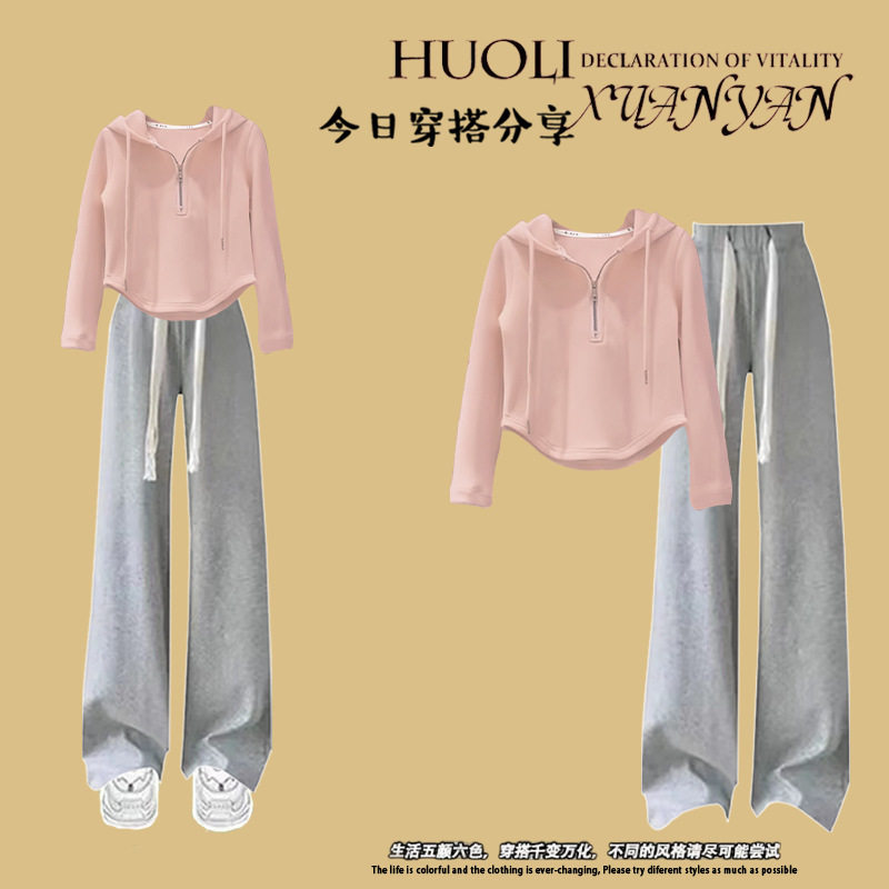 大童学院风套装女学生洋气时尚休闲长袖连帽卫衣+休闲裤两件套