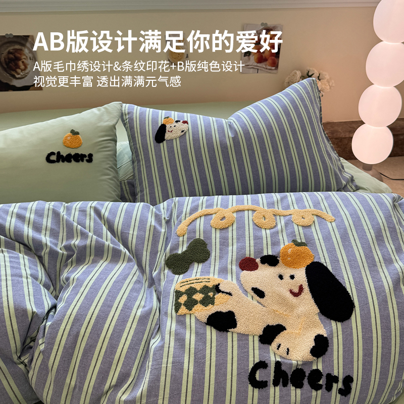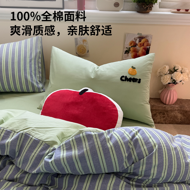 无印良品儿童卡通床品三件套纯棉学生宿舍男孩床品四件套床单A类