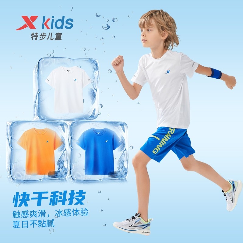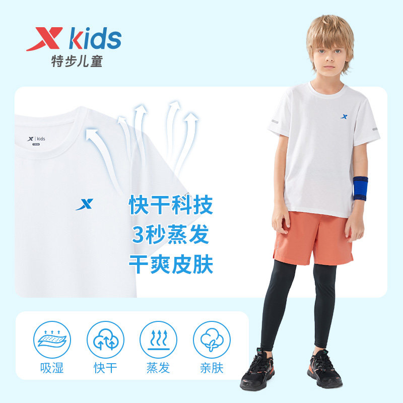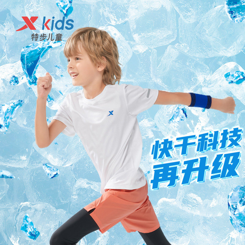 特步童装儿童短袖T恤男童薄夏装夏季新款中大童速干衣打底衫清仓