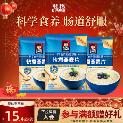 桂格快煮纯燕麦片谷物1000g原味煮食懒人早餐冲饮