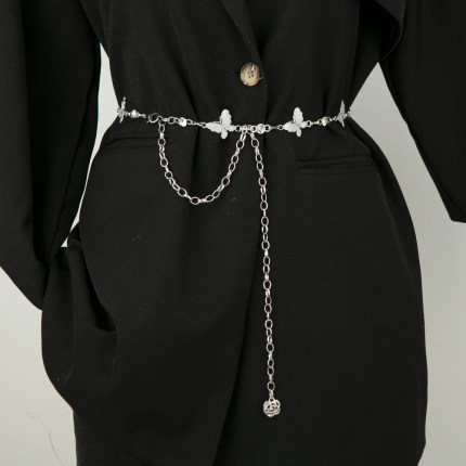 金属腰链女士细腰带配裙子蝴蝶装饰连衣裙带简约时尚百搭链条腰封