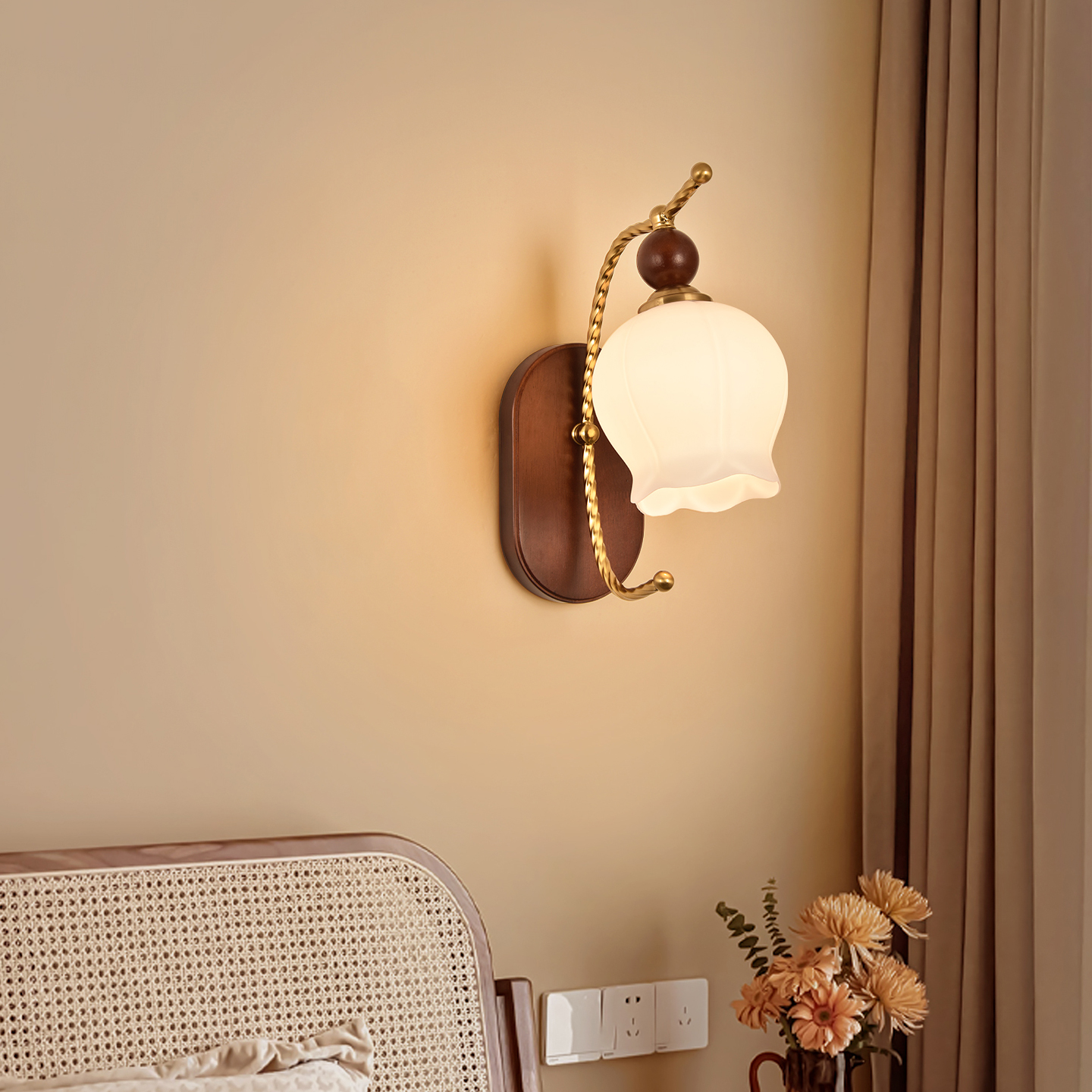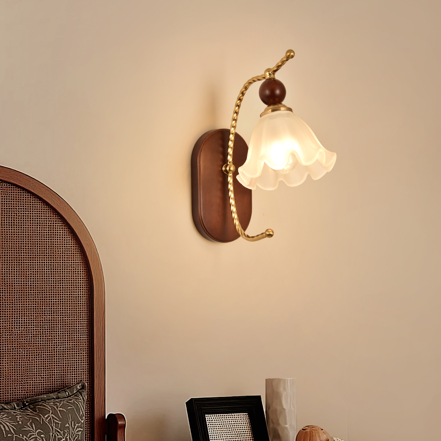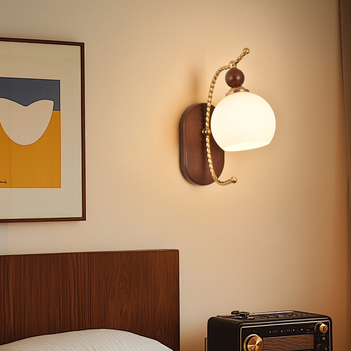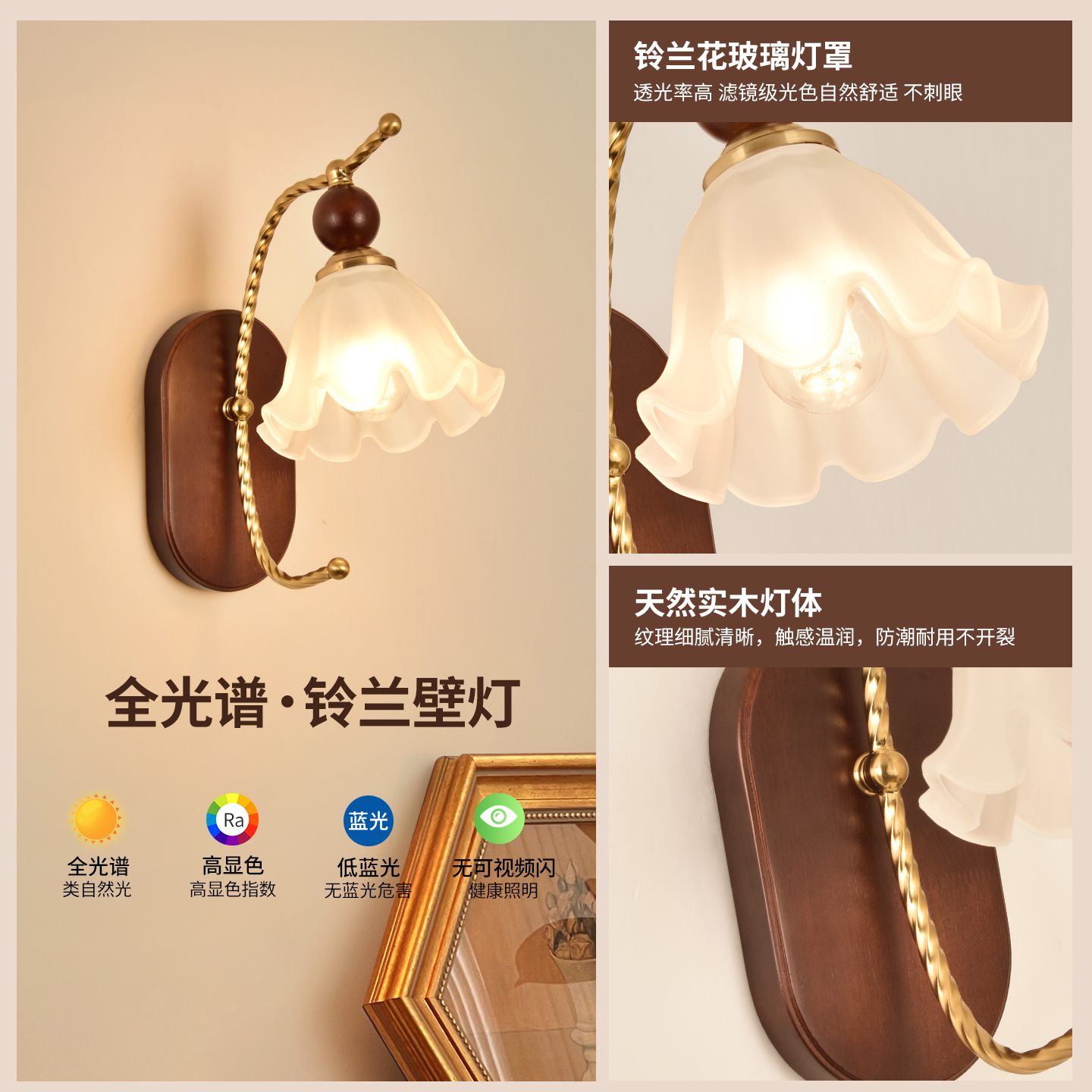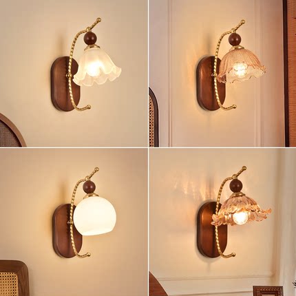 法式中古奶油风床头壁灯日式温馨卧室走廊书房灯美式复古背景墙灯