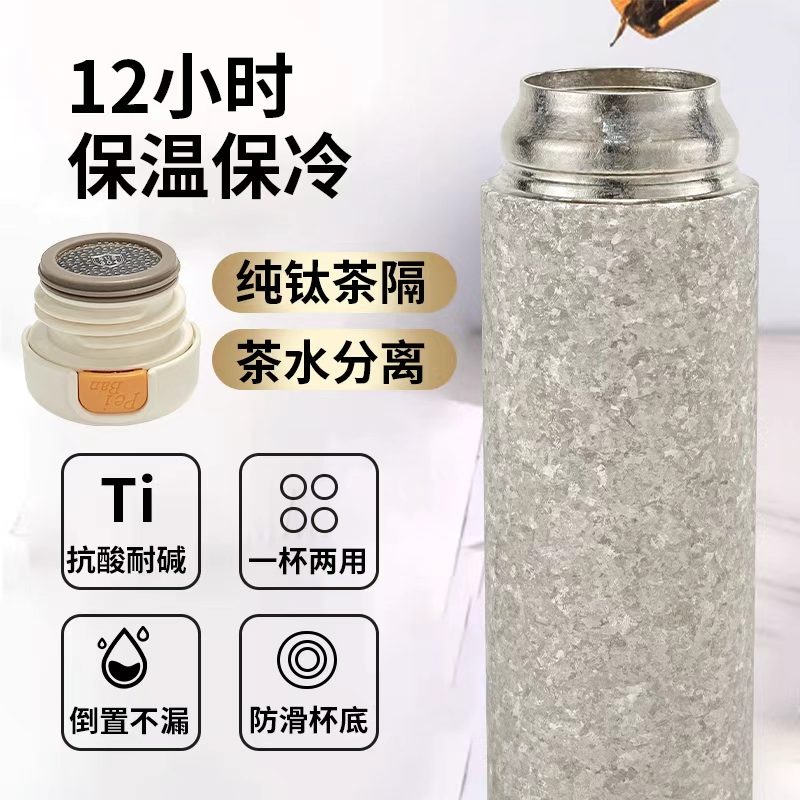 莱尔茵纯钛保温杯双层钛金焖茶杯带茶隔便捷泡茶杯车载养生钛水杯