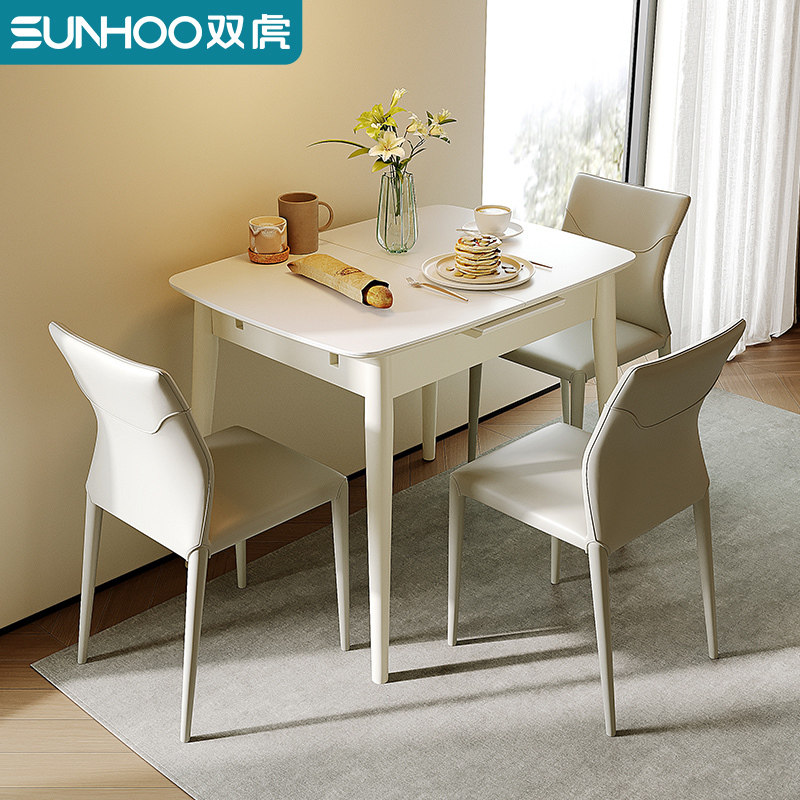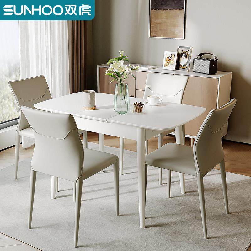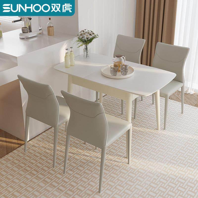 双虎岩板餐桌轻奢现代简约家用小户型可伸缩折叠餐桌椅组合2705