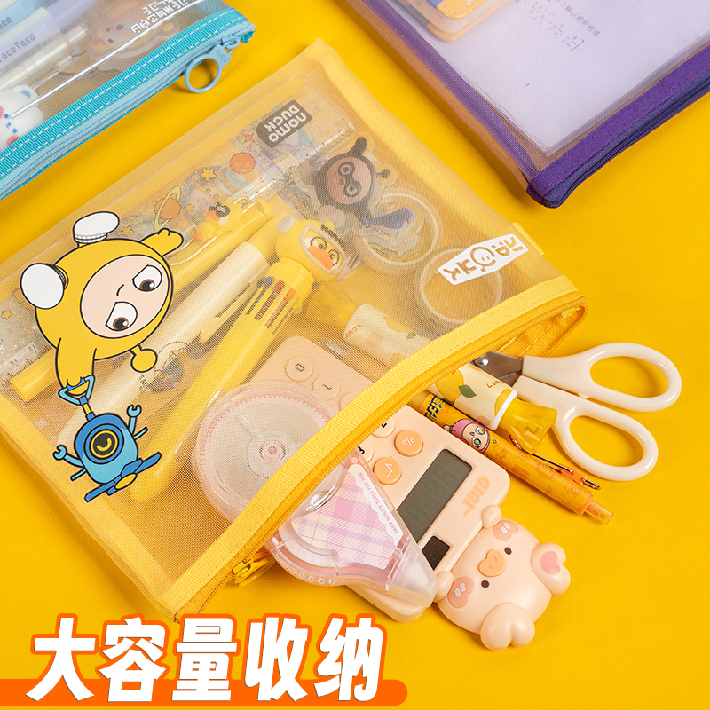 正版蛋仔派对A4透明网纱文件袋可爱卡通拉链式大容量小学生用资料书本课本分科书袋试卷收纳袋学生装卷子袋子