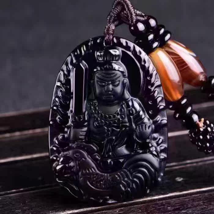 天然黑曜石不动尊菩萨吊坠 男女生肖鸡猴本命佛守护神项链
