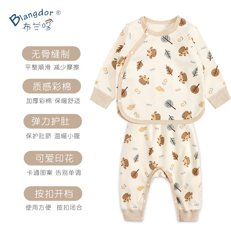 宝宝秋衣秋裤套装纯棉春秋冬款婴儿高腰护肚衣服无骨睡衣分体内衣