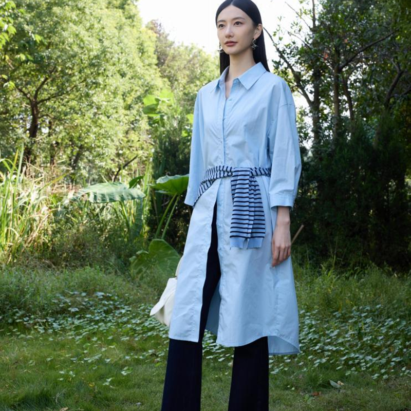 【可系】专柜251061春秋披肩风衣式连衣裙女宽松长款衬衫