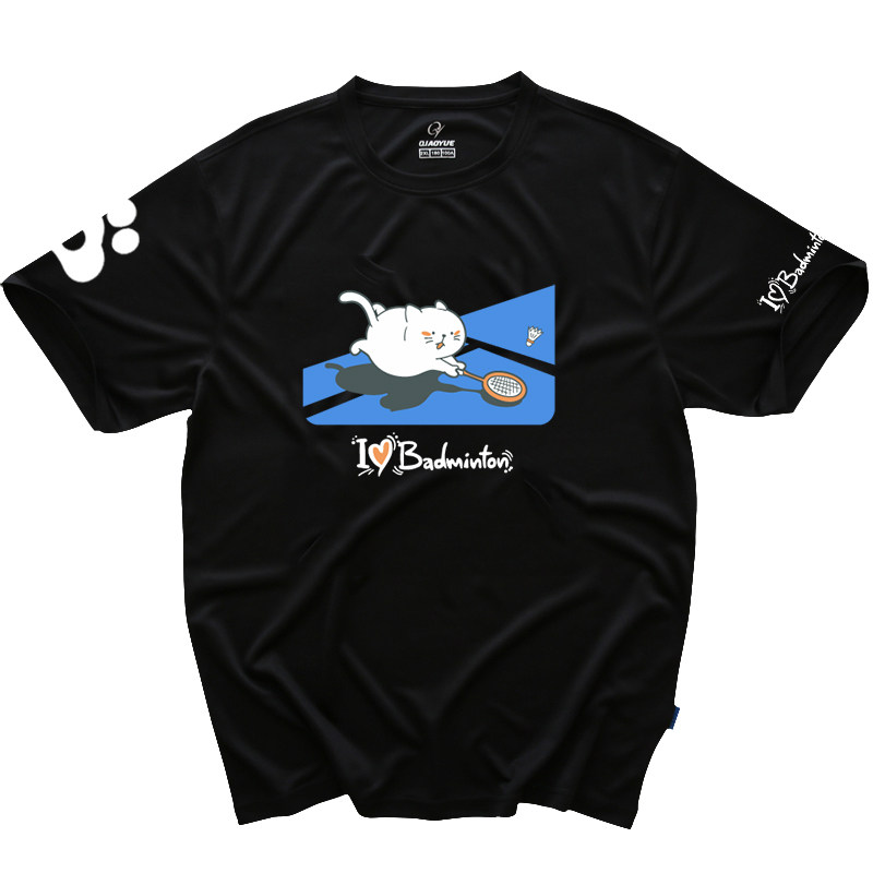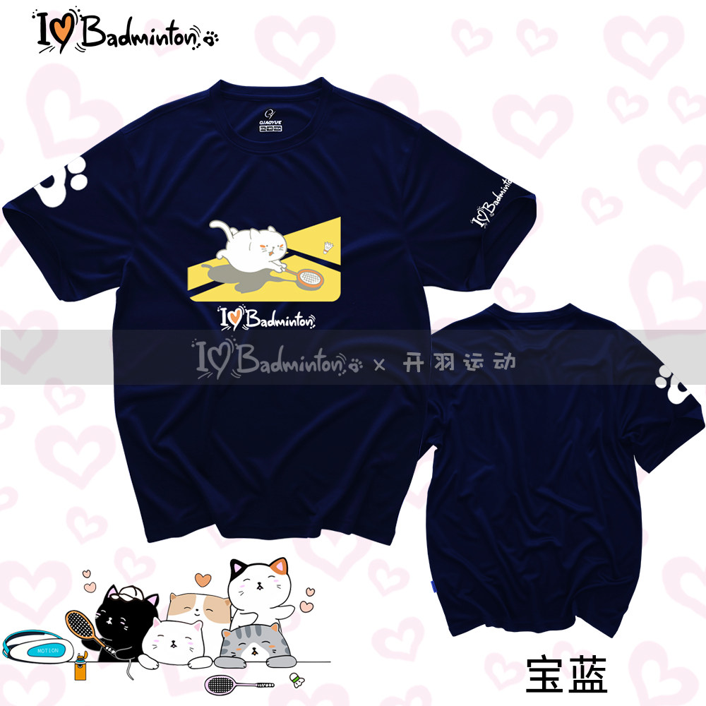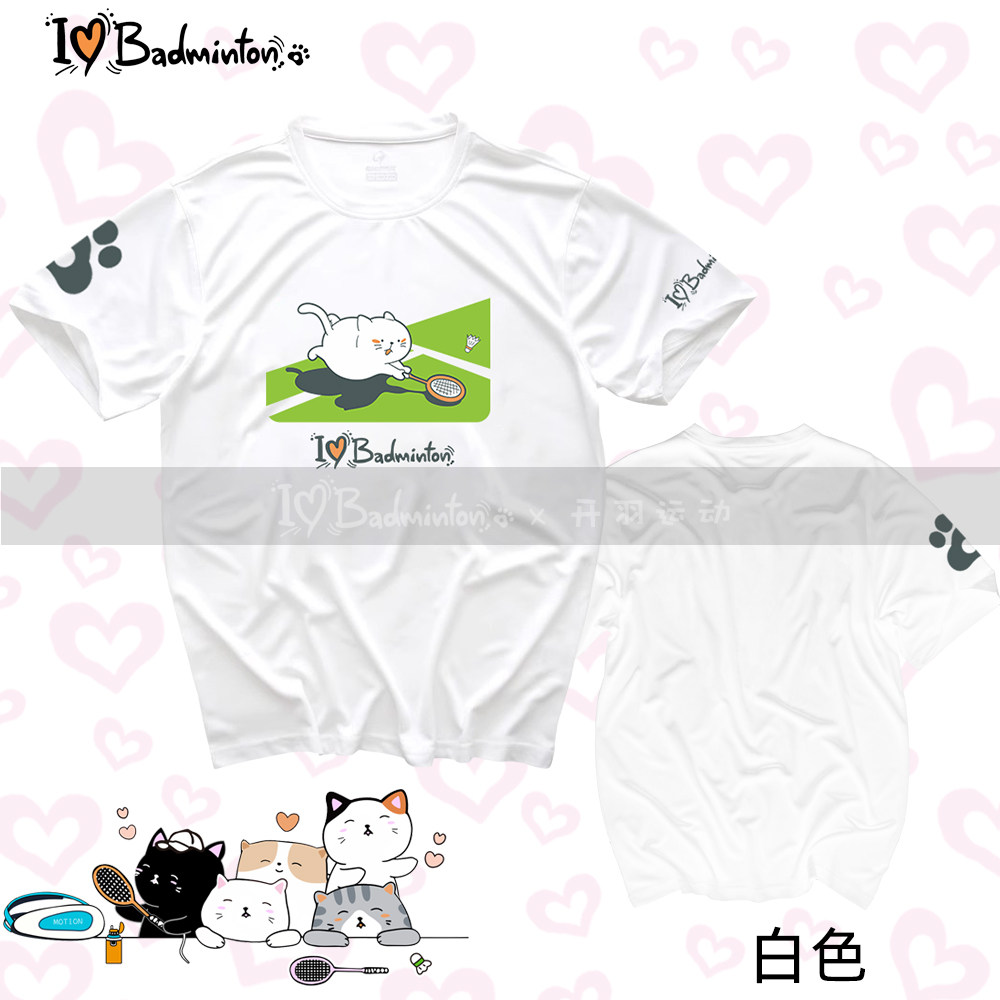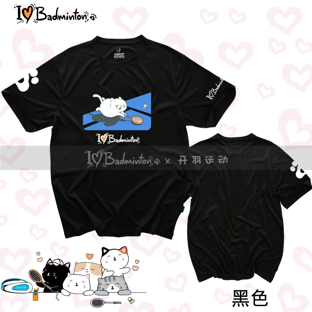 badminton速干羽毛球文化衫男女短袖上衣猫咪T恤跑步运动服印字夏