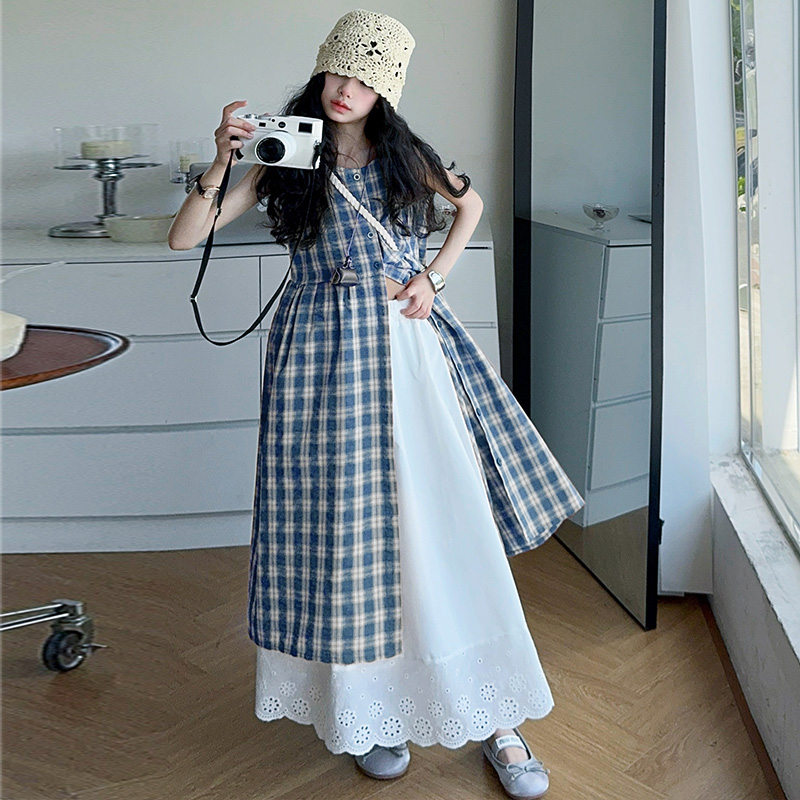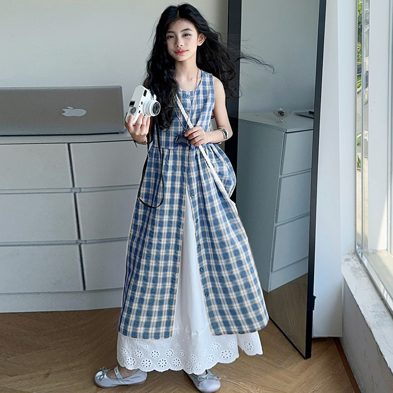 女童韩系格子裙套装夏季2025新款儿童叠穿慵懒风连衣裙夏装女大童