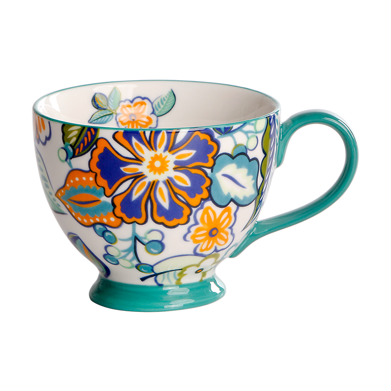 美式早餐杯手绘陶瓷杯子家用创意田园风马克杯大容量牛奶杯燕麦杯
