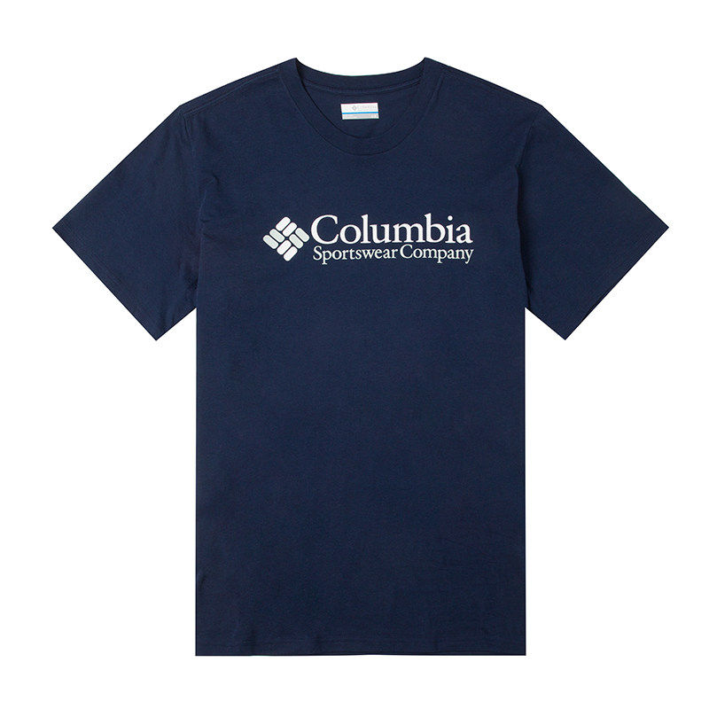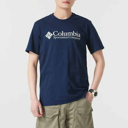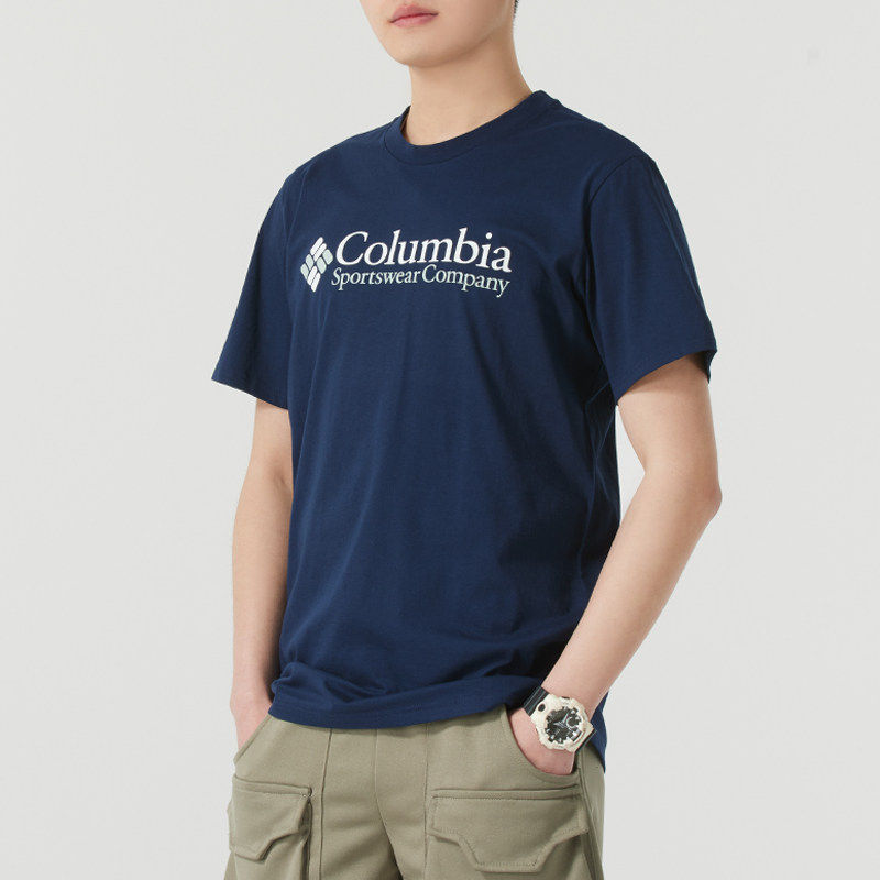 哥伦比亚官方短袖男士蓝色上衣春夏季圆领纯半袖休闲户外运动T恤