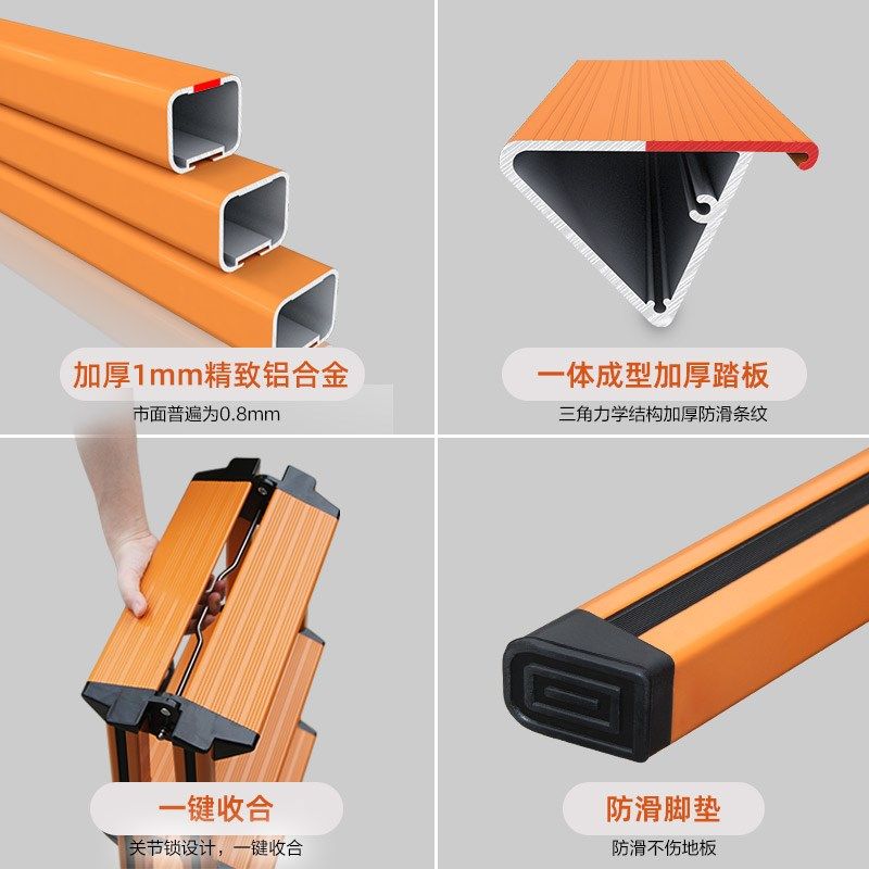 瑞居铝合金室内家用梯子多功能加厚便携折叠三步人字梯凳步梯楼梯