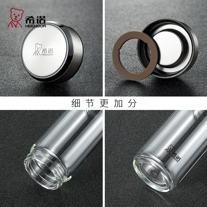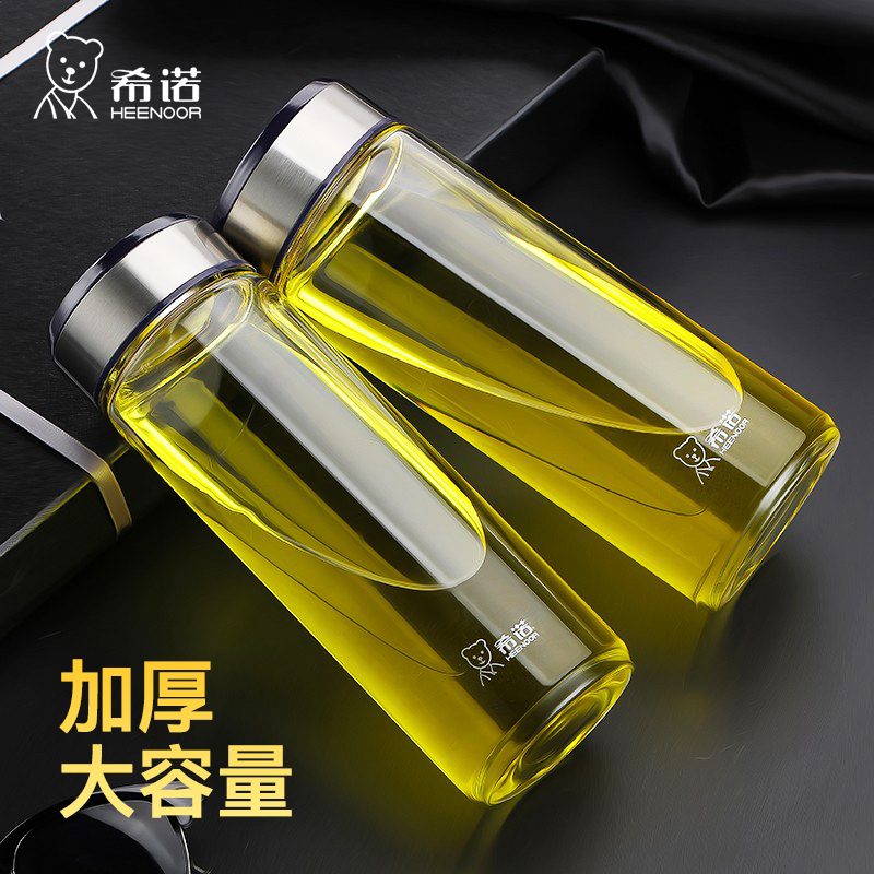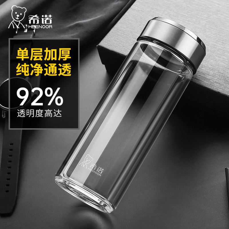 希诺加厚玻璃杯 耐热高档车载泡茶杯 单层新款男士大容量水杯子