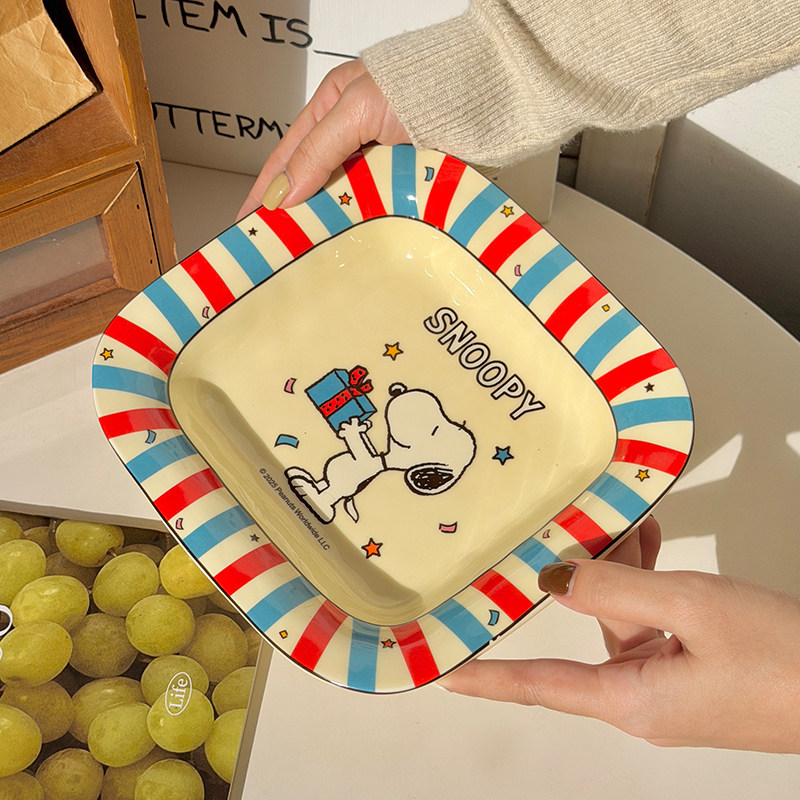 史努比陶瓷盘子特别好看的餐盘家用可爱餐具高级感水果甜品盘深盘