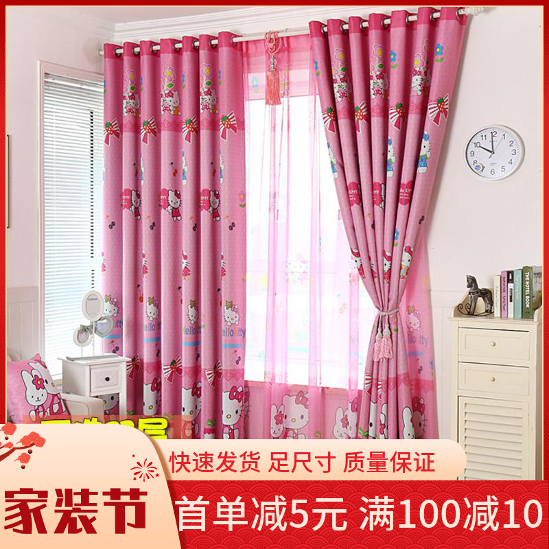 双层特别加厚99%遮光卡通成品全遮光粉色公主女儿童房窗帘布料