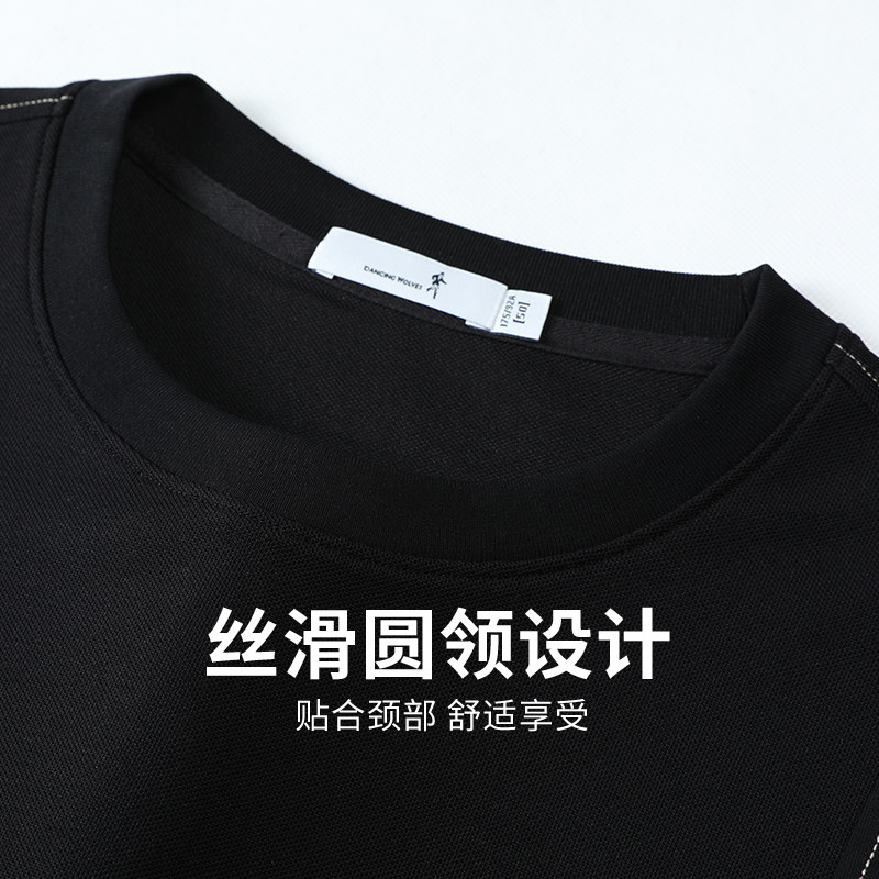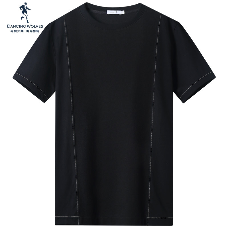 【明线】与狼共舞圆领短袖T恤男2025夏季新款撞色透气百搭上衣男