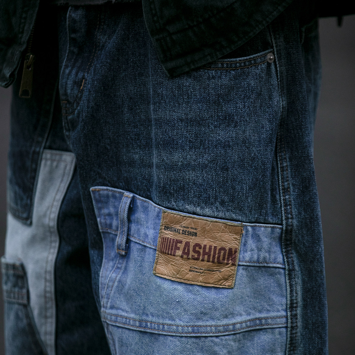拉链长裤水洗秋冬拼接牛仔裤
